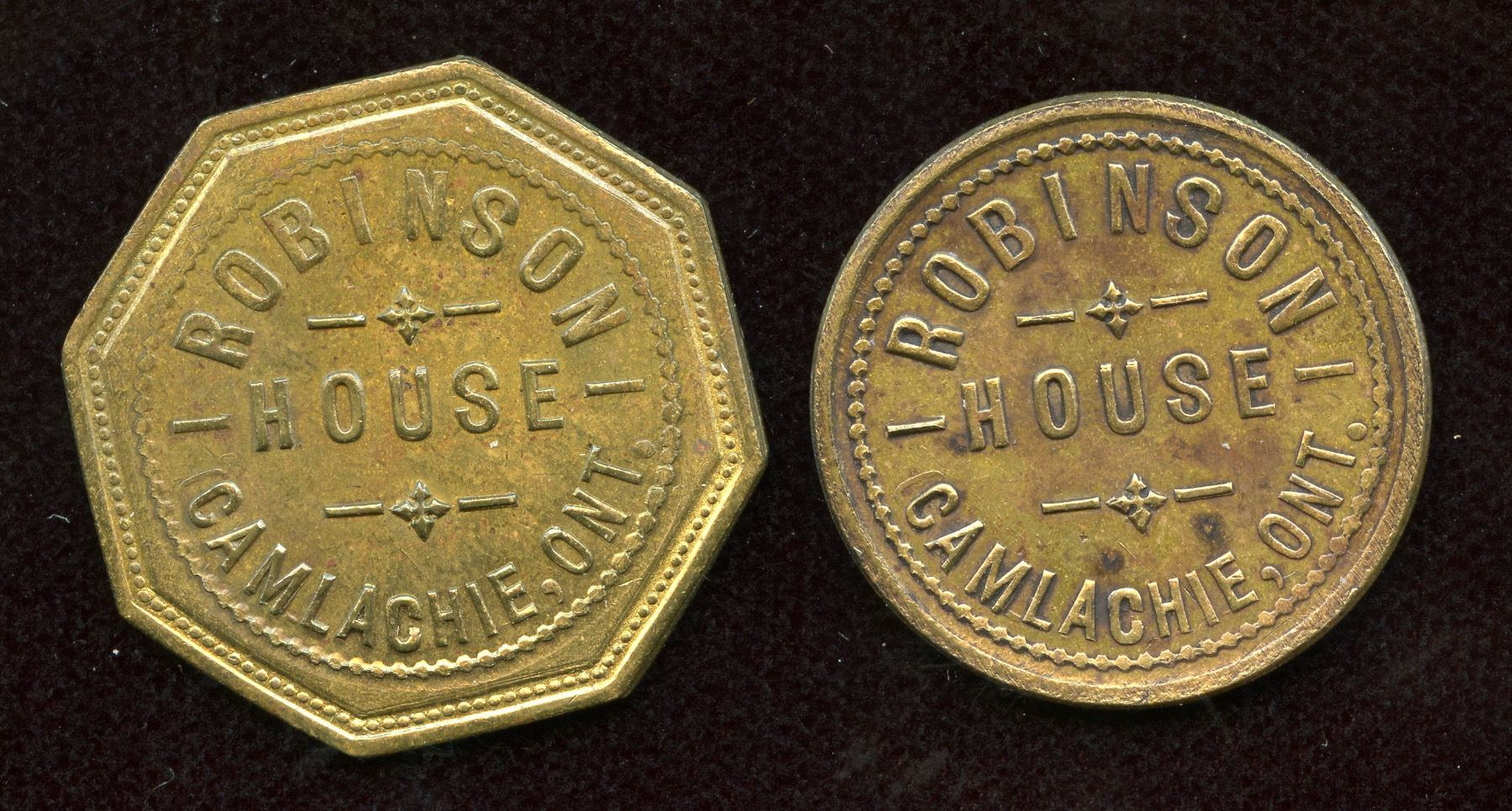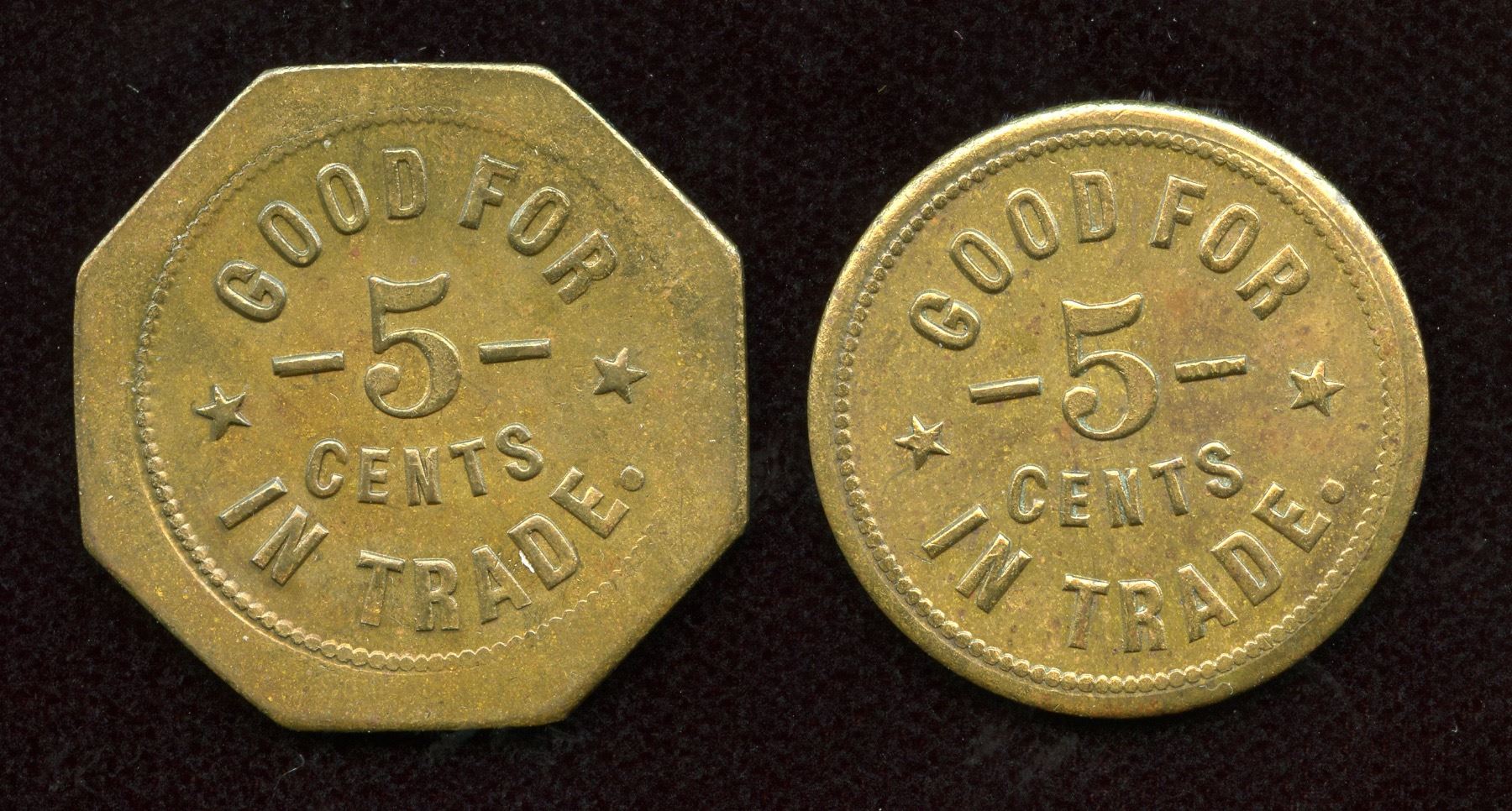 Br. 762, Bo 172-A-Ey, Robinson House, 5 Cents, Brass, EF; Br. 762A, Bo 172-A-Ex, Robinson House, 5 Cents, Brass, EF. 2 Pcs.