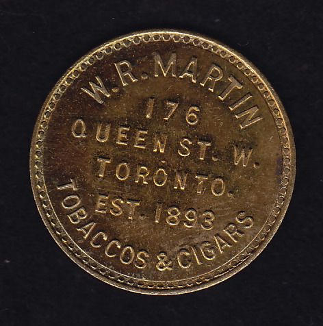 Ontario Trade Token. W.R. Martin, Toronto, ON, 5 cents, 1901, brass, UNC and SCARCE.