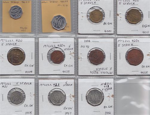 Includes: Mc 419 W.R. Richardson, St. George, Ont. Rev: 1c; Mc 420 5 struck as previous Rev: 1c, 5c, 10c; Mc 420a 5 struck Rev: 1c, 5c, 10c; Mc 421 5 struck as previous Rev: 1c, 5c, 10c . VF to UNC. 11 Pcs.