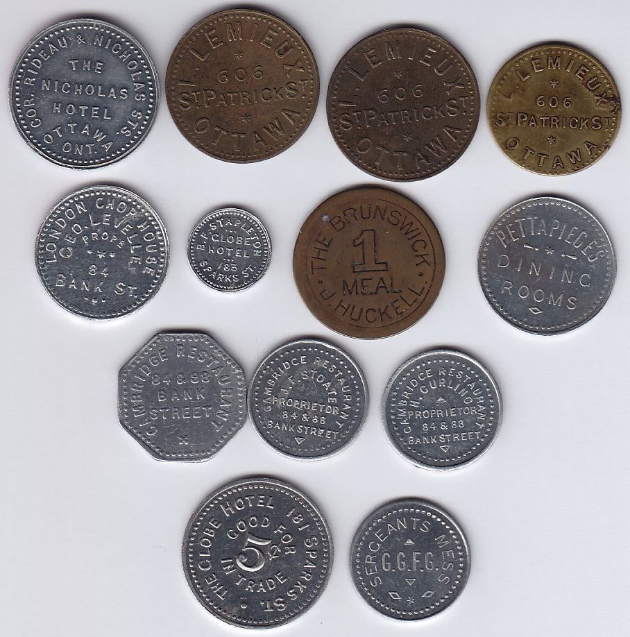 Includes: Bo 760-AK-A, Nicholas Hotel; Bo 760-AC-D, E, Ex, L. Lemieux; Bo 760-A-E, London Chop House; Bo 760-BB-E, B.F. Stapleton, Globe Hotel; Bo 760-C-B, The Brunswick; Bo 760-CI-A, Pettapiece’s; Bo 760-E-A, B, C, Cambridge Restaurant; Bo 760-R-E, Globe Hotel; Bo 760-RZ-E, Gov. Gen’s Foot Guard. All Unc but one. 13 Pcs.