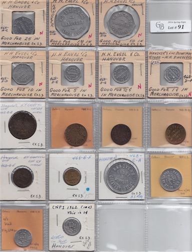 Includes: Bo 468-A-A to A-E A-G H.H. Engel Rev: 1.oo, 50, 25, 10, 5, 1/2c; H.H. Engel Live Department Store Rev: 1c; Bo 468-B-B B-C B-D B-Dy B-E B-F E.F. Graff Rev: 50c, 25c, 10c, 10c (low c), 5c and 1c; Bo 468-C-A C-E Graff & Weppler Rev: 1.oo and 5; as previous C-E c/s VOID Rev: 5; as previous C-F c/s VOID Rev: 1 in 1982 suppl. F to VF. 17 Pcs.