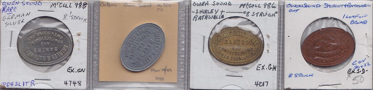 Includes: Mc 985 Shirley & Rathwell Rev: 1 loaf; Mc 986 8 struck as previous; Mc 987 8 struck as previous; Mc 988 8 struck as previous. EF. 4 Pcs.