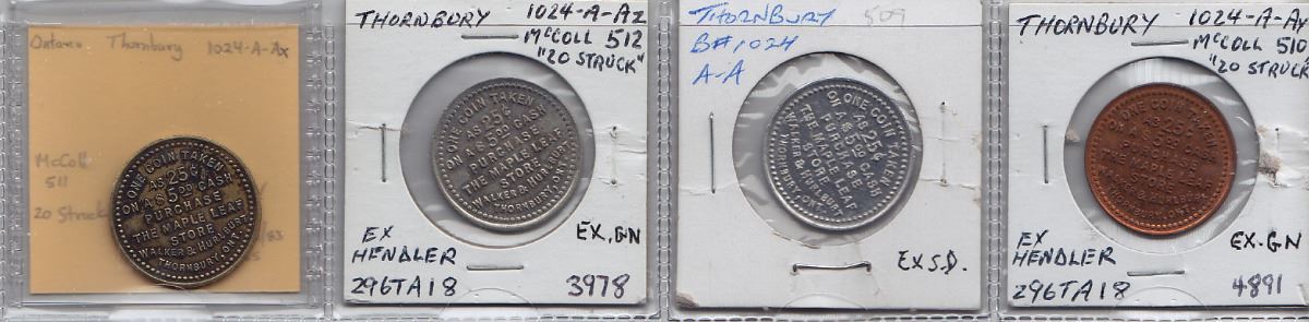 Includes: Mc 509 Walker & Hurlbury Rev: clasped hands; Mc 510 20 struck as previous; Mc 511 20 struck as previous; Mc 512 20 struck as previous. VF to EF. 4 Pcs.