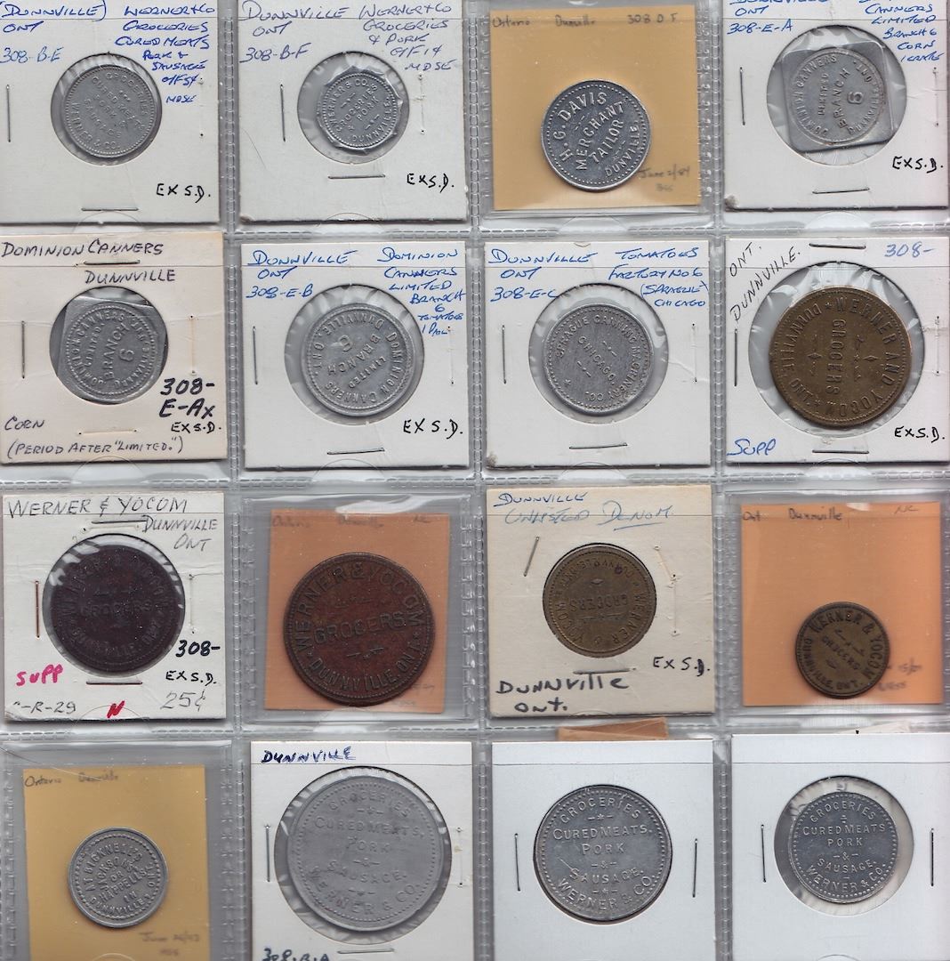 Includes: Bo 308-A-A to A-C B-E B-F Werner Rev: 1.oo, 50c, 25c, 5c and 1c; Bo 308-D-F H.G. Davis Rev: 75; Bo 308-E-A (no period after Limited) E-Ax E-B E-C Dominion Canners Rev: Corn, Corn, pail tomatoes and tomatoes; Werner and Yocom Rev: 50 cents and 25 cents in 1982 suppl; as previous Rev: 1.oo, 10 cents and ce1nt; At Bickell's Jackson's or Happell's Rev: 5c. F to EF. 16 Pcs.