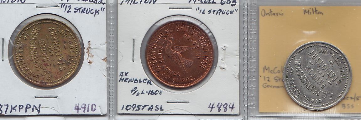 Includes: Mc 682 12 struck E.C. Featherstone Rev: dove; Mc 683 12 struck as previous; Mc 684 12 struck as previous. VF to EF. 3 Pcs.
