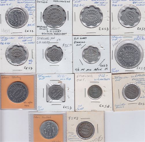 Includes: Bo 284-A-E, Lawson’s, Deseronto, 5¢, Al., Unc; Bo 956-A-B, C, D, Dx, E, Ex, Luery, Stirling, Al., EF to Unc; Bo Supp. Elliott, Stirling, 50¢, 25¢, Al., both Unc; Bo Supp, W.L. Fox, Stirling, 5¢, Al., Unc; Bo Supp, W.R. Mather, Good for 1, Good for 5 (unlisted), Al., both VF; Neely & Graham, Sterling [sic], unlisted, Al., 5¢, Fine; Frankford Canning Co., for Peeling, Al., Unc. 14 Pcs.