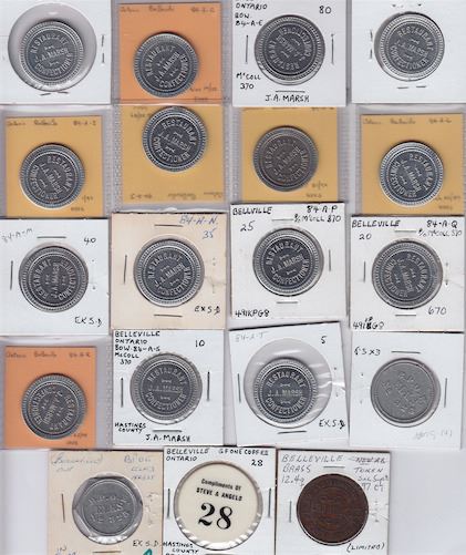 Includes: Mc 370, Bo 84-A-A, C, E, H, I, J, K, L, M, N, P, Q, R, S, T, Marsh Restaurant, Al., all Unc to BU; Bo Supp, B.O.P.E. Elks, round and octagonal, Al., AU; Olympic Restaurant, one coffee, white plastic, Unc; Springer Lock Mfg. Co., brass, advertising piece, EF. 19 Pcs.