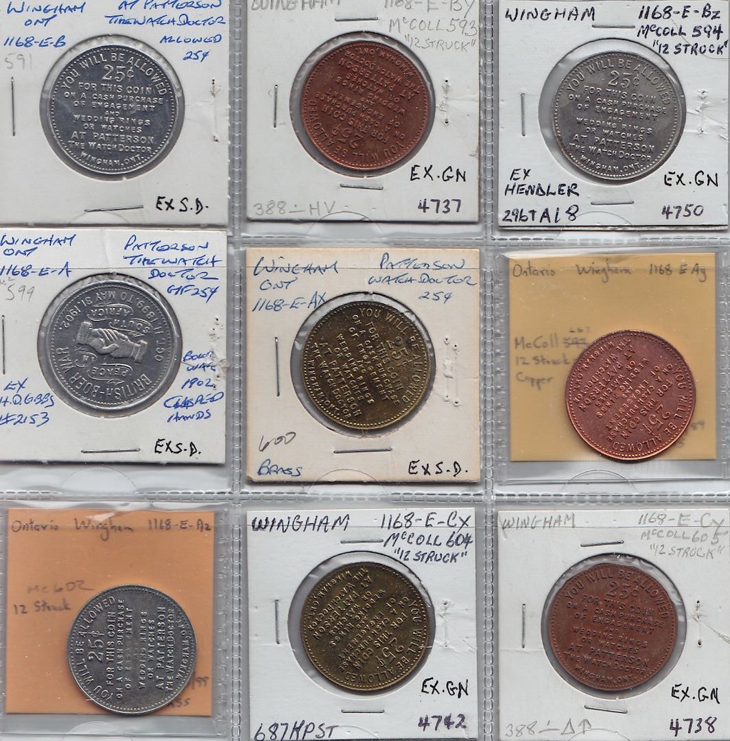 Includes: Mc 591 Patterson Watch Doctor Rev: dove; Mc 593 12 struck as previous; Mc 594 12 struck as previous; Mc 599 as previous but Rev: clasped hands; Mc 600 12 struck as previous; Mc 601 12 struck as previous; Mc 602 12 struck as previous; Mc 604 12 struck as previous but Rev: turkey; Mc 605 12 struck as previous. EF. 9 Pcs.