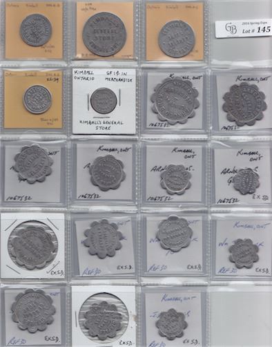 Includes: Bo 544-A-A A-C to A-F Kimball's Rev: $1, 25c, 10c, 5c and 1c; Arnold Bros. Rev: $1, 50c, 25c, 10c, 5c and 1c; Wm. T. Ruddick Rev: 50, 25, 10 and 5; J.A. Staples Rev: 50c, 25c and 5c. F to EF. 18 Pcs.