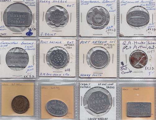 Includes: As 1125a Lake Bros. North Bay one loaf; As 0315a Crown Bakery Cobalt one loaf; As 0315b one quart; As 0320a L. Zanin Cobalt 1 loaf; As 1330a J. Brint Parry Harbor 1/2 loaf; As 1330b J. Brint Parry Harbor 1/2 loaf; As 0510a Bowcott Fort William 1 loaf; As 0575a Gerald Bakery 1 loaf; As 1425a D.M. Davidson Port Arthur 1 loaf; As 1430a Henry Foote Port Arthur 1 loaf; As 1432a G.A. Hunter Port Arthur 1 loaf; As 1445a Palace Bakery Port Arthur 1 loaf. G to EF. 12 Pcs.