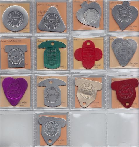 Includes: Hillcrest Dairy Iroquios Falls (red) 1 quart homo; (gold) 3 qts homo; (alum) 3 qts 2%; Laiterie Dairy Kapuskasing one pint; one quart; Dennis Ryan Smooth Rock Falls 1 quart; Mironuk's Dairy Smooth Rock Falls 1 quart; Community Dairy Smooth Rock Falls 1 quart; Korman's Dairy (Timmins) (green) 1 quart; (red) 3 qts homo; Timmins Dairy 1 quart; (purple) 1 quart skim; 1/2 gallon partly skimmed. VF to EF. 13 Pcs.