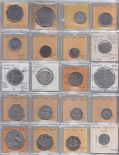 Includes: Bo 332-B-A to B-F N. Wildfang Elmwood Rev: $1 to 1c; J.K. Goodfellow Elmwood, Ont. Rev: 1c, Go to F; Emke brewery Formosa, Ont. Rev: 80c return of 2 doz. pint bottles; Formosa spring brewery Formosa, Ont Rev: 80c return of 2 doz. pt bottles unlisted; Bo 398-A-A to A-E Dentinger & Beingesser Formosa, Ont Rev: $1 to 5c; Bo 398-B-A to B-C Dentinger & Beingesser c/s GGB Rev: $1 to 25c; Bo 392-D-F Oberle Bros. Formosa, Ont. Rev: 1c; Schwartz & Fedy Formosa, Ont. Rev: 10. EF to UNC. 20 Pcs.