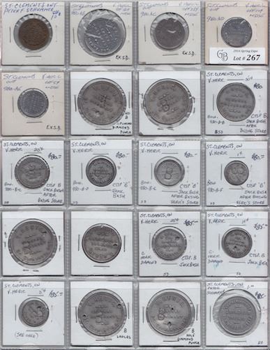 Includes: Bo 980-A-B to A-E V. Heric St. Clements Rev: 50c, 25c 10c and 5c; as previous holed with diamond shape; Bo 980-B-A to B-F as previous c/s B Rev: $1, 50c, 25c 10c, 5c and 1c; as previous holed with diamond shape and c/s B rev: $1, 50c, 25c, 10c and 5c; as previous two round holes and c/s B Rev: $1; as previous holed with diamond shaped and small round hole and c/s B Rev: $1; Bo 980-C-A to C-F Peter F. Schummer St. Clements Rev: $1, 50c, 25c, 10c, 5c and 1c. 24 Pcs.