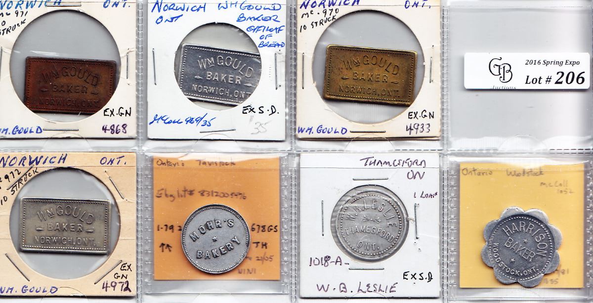 Includes: Mc 969 Wm Gould Norwich 1 loaf; Mc 970 10 struck as previous; Mc 971 10 struck as previous; Mc 972 10 struck as previous; As 1750a Mohr's (Tavistock) 1 loaf; As 1755a W.B. Leslie Thamesford 1 loaf; As 2005a Harrison Woodstock Rev: 1 loaf. EF. 7 Pcs.