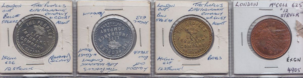 Includes: Mc 623 Peoples Life Insurance Rev: $1 on, Mc 624 12 struck as previous, Mc 625 12 struck as previous, Mc 626 12 struck as previous. EF. 4 Pcs.