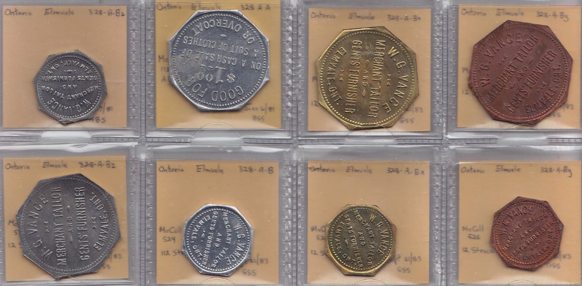 Includes: Mc 524 112 struck W.G. Vance Rev: 50c; Mc 525 12 struck as previous; Mc 526 12 struck as previous; Mc 527 12 struck as previous; Mc 528 112 struck W.G. Vance Rev: $1; Mc 529 12 struck as previous; Mc 530 12 struck as previous; Mc 531 12 struck as previous. EF. 8 Pcs.