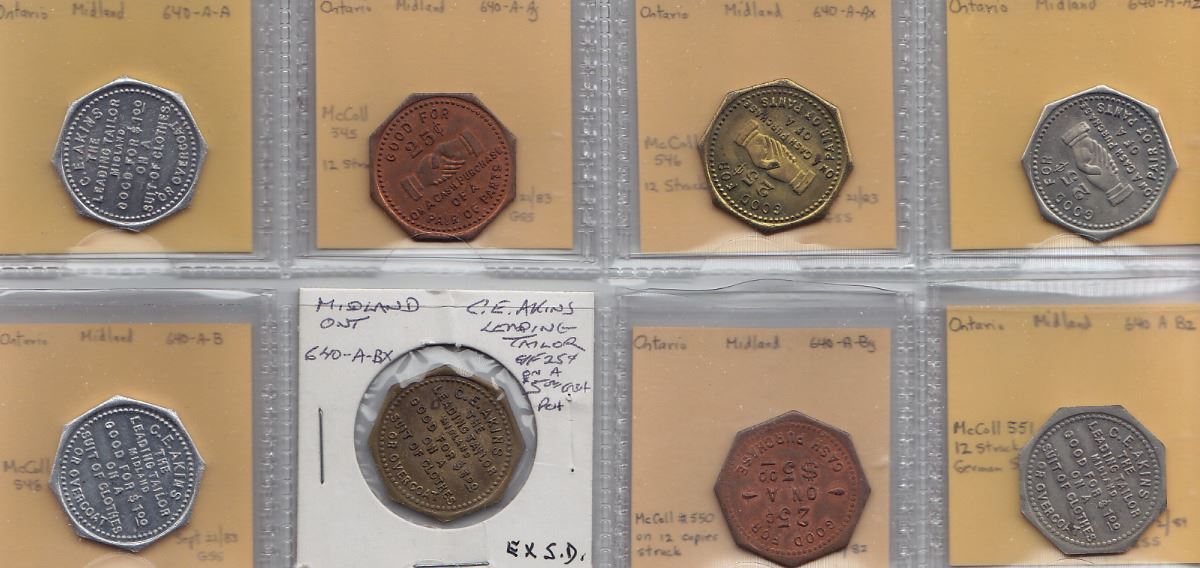 Includes: Mc 544 C.E. Aikens Rev: clasped hands; Mc 545 12 struck as previous; Mc 546 12 struck as previous; Mc 547 12 struck as previous; Mc 548 C.E. Aikens Rev: 25c; Mc 549 12 struck as previous; Mc 550 12 struck as previous; Mc 551 12 struck as previous. EF. 8 Pcs.
