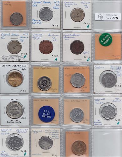 Includes: Bo 275-A-D Lincoln Hotel Crystal Beach Rev: 10c; Crystal Beach Tenant Co. WM c/s 59; as precious c/s 78; as previous c/s 203; as previous copper c/s 153; as previous c/s 170; C.B. Co. Tenant bi facial; Crystal Beach 1890 to 1940; Crystal Beach Baja Buggies; Bo 380-A-B A. Railton Fonthill Rev: 50; Dominion Canners Fonthill Rev: tomatoes in 1982 supp; Fort Erie $1 casino coin; R.C.L. Fort Erie; Bo 716-A-F C.B. Reece North Pelham Rev: turkey; Bo 1126-A-R Welland 15c service; Bo 1126-B-A Welland 32 Cross st.; Empire Cotton Mills Welland Rev: 5c; Welland Co. Hospital parking. F to EF. 18 Pcs.