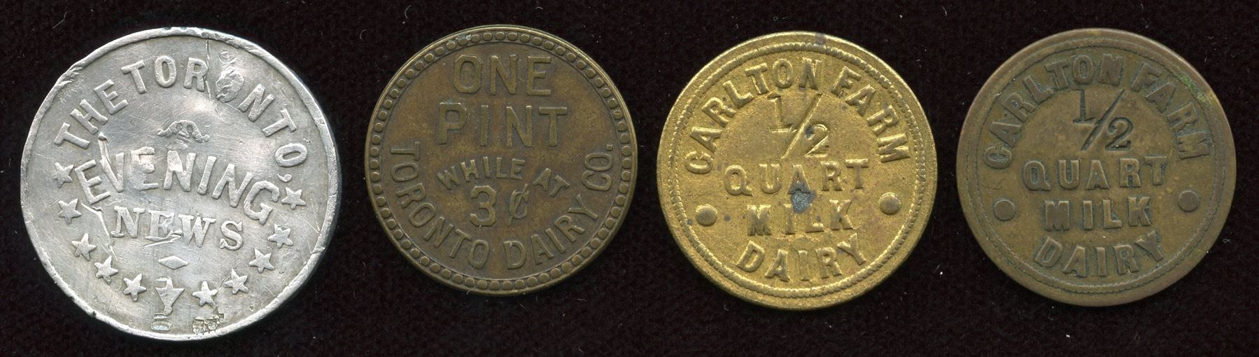 Br. 809, Carlton Farm, VF & AU, x2; Br. 812, Toronto Dairy, VF; Br. 840, Toronto Evening News, VG with damaged surfaces. 4 Pcs.
