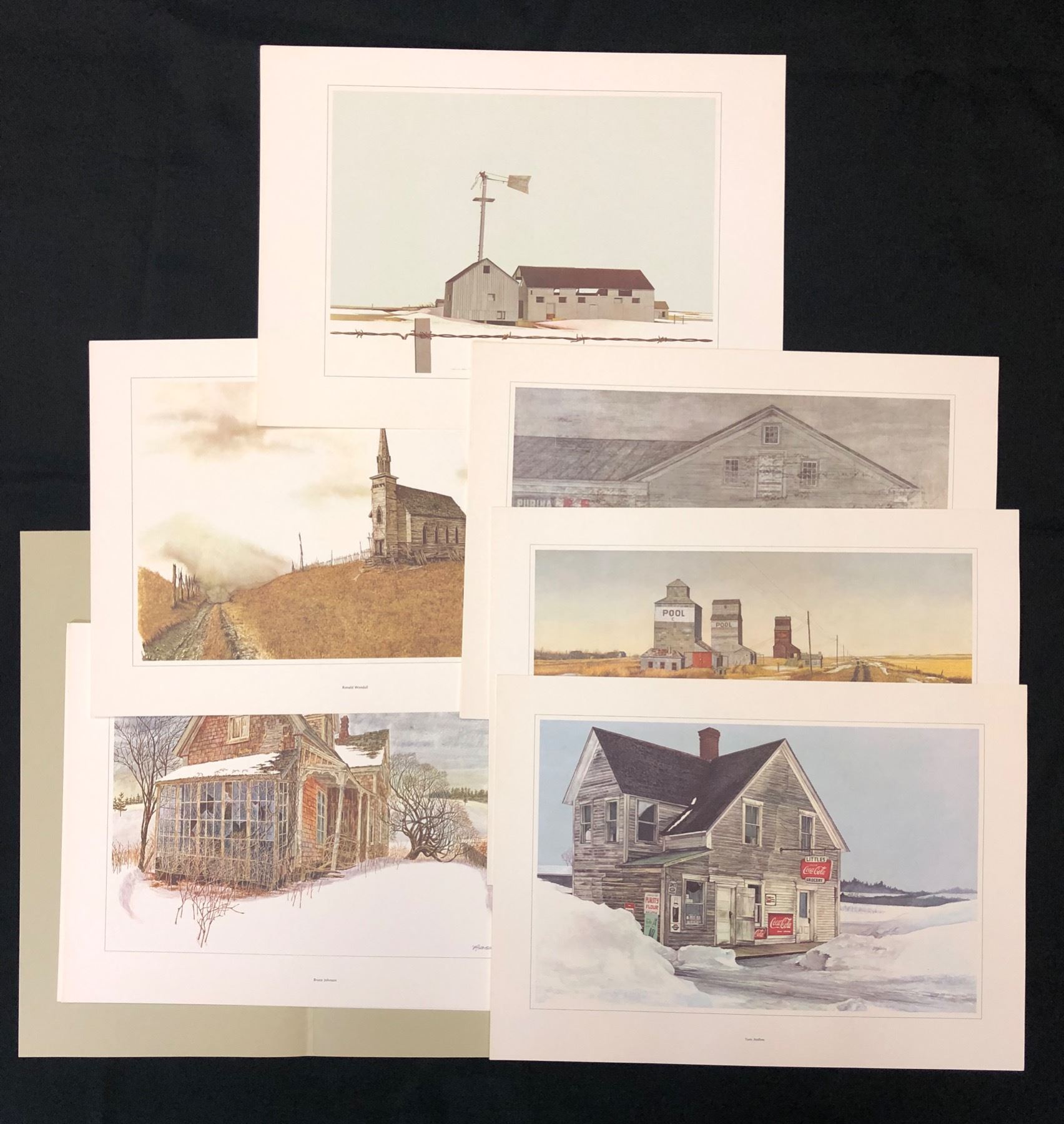Paintings/prints. A portfolio of 10 prints of Vanishing Buildings of Rural Canada done by well-known Canadian artists. There is a print from each province. They are on art stock, 12x16 inches and in full color. Along with a portfolio of 14 full color historical paintings of the Hudson Bay Company. They measure 18x20 inches, high quality art stock and are suitable for framing. There were 10,000 sets produced in 1970 on the 300th anniversary of the company's founding. They were originally published by Bulman Brothers Limited of Winnipeg. The original sets were distributed to company employees and customers at their stores and posts. We recommend viewing this delightful collection.