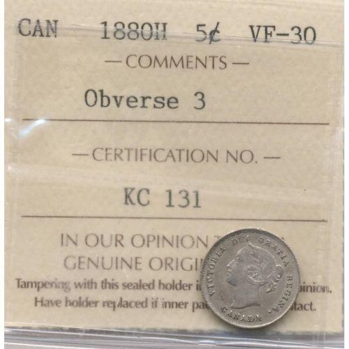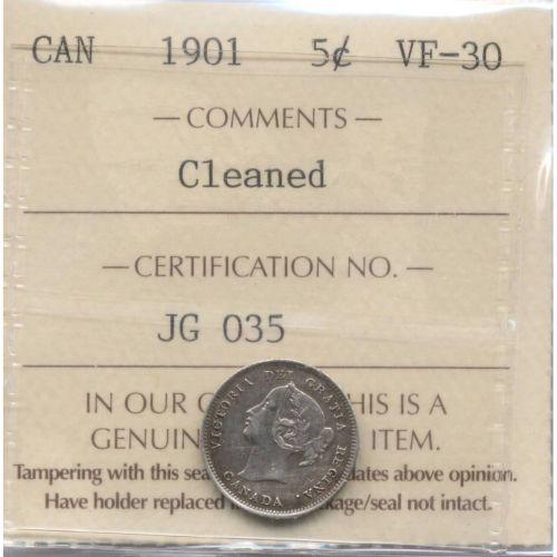 Pair of 1880 & 1901 Canadian 5 Cent ICCS VF-30<BR><BR>Nice presentable coins, 1901 is cleaned