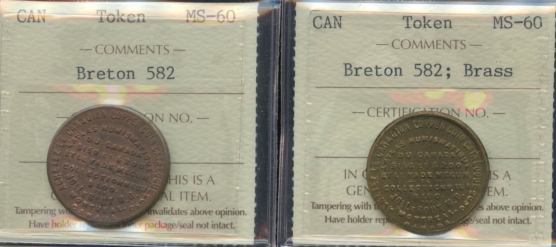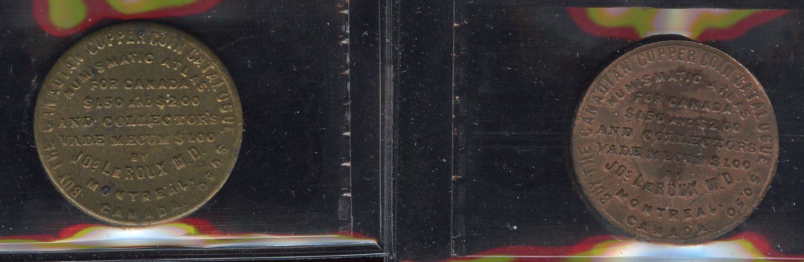 Struck in 1885 advertising two of his numismatic works. Copper and Brass. Both ICCS Graded MS-60. 2 Pcs.