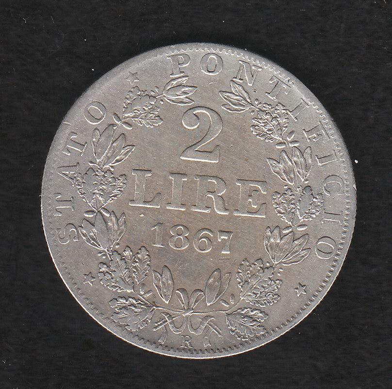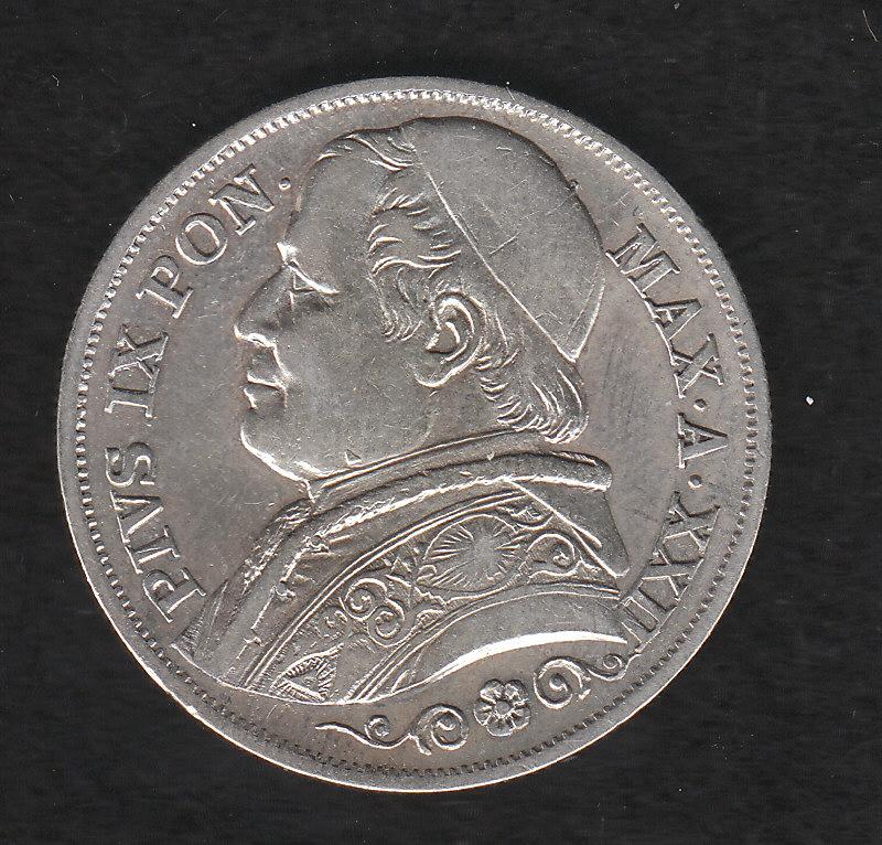 VF, silver; Pius IX, yr XXII; KM 1379.2