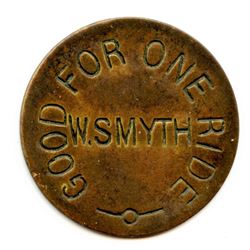 Quebec Transportation Token. McColl 103, Atwood 745E, GOOD FOR ONE RIDE / W. SMYTH, uniface, brass, 29mm, Legends Incused, Scarce. 1 Pc.
