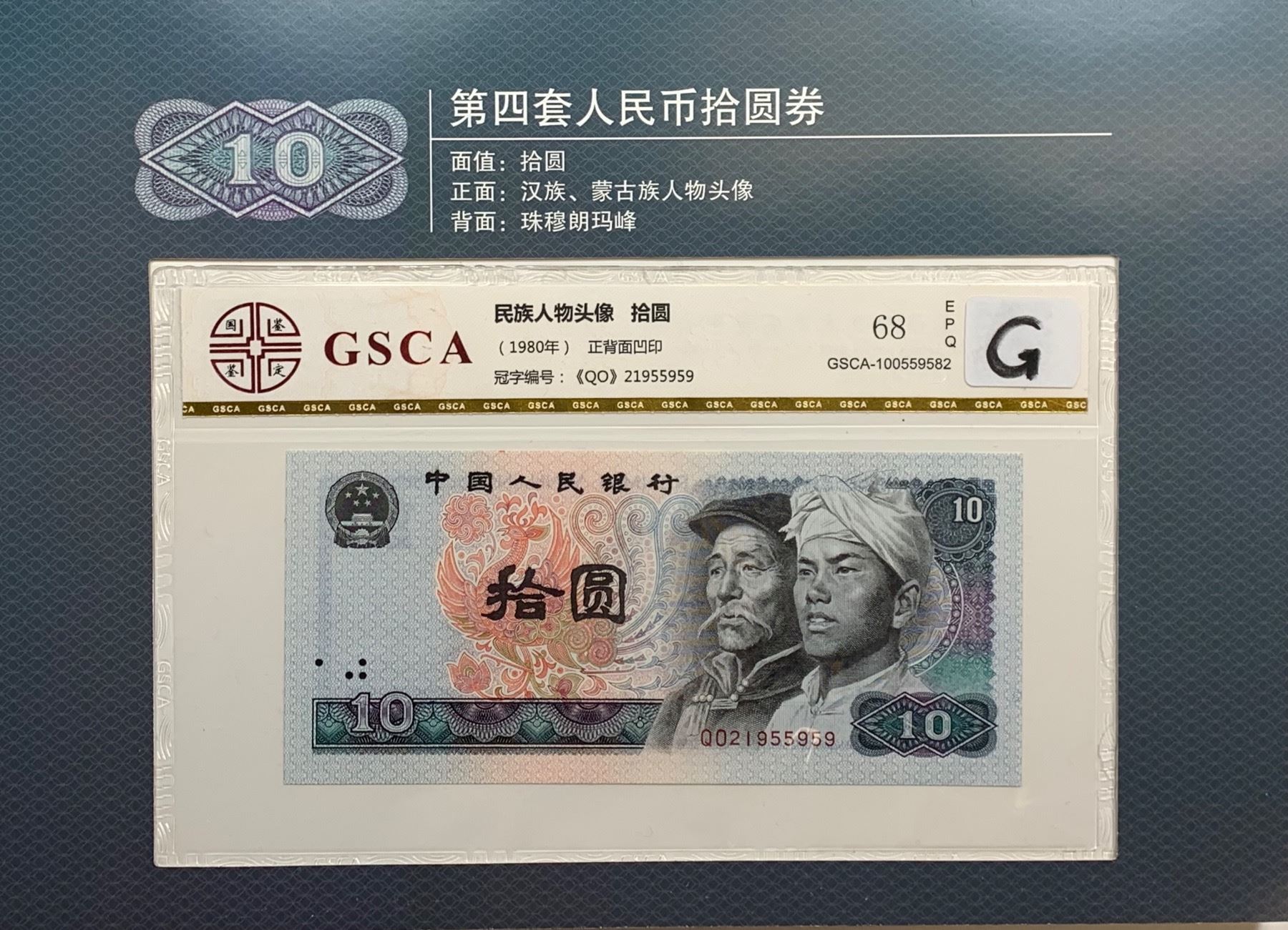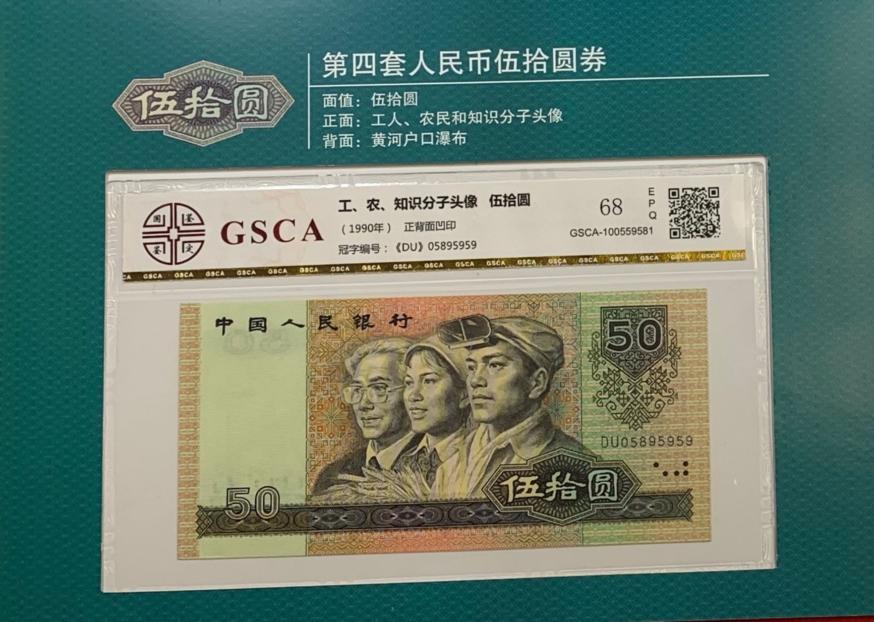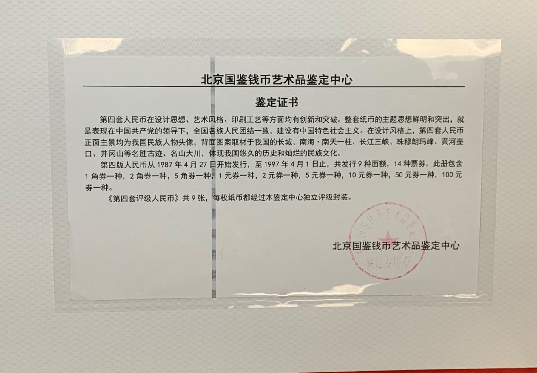 9 Pieces, all GSCA certified. Last 4 serial number the same "5959". All housed in a gorgeous book entitled "The Fourth Series of RMB Package Rating Special Collections".