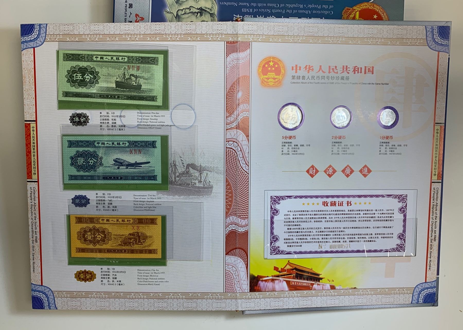 9 Pieces, last 4 serial number same "494". Housed in a book entitled "Collection Album of the Fourth Series of RMB of the People's Republic of China with the Same Numbers".