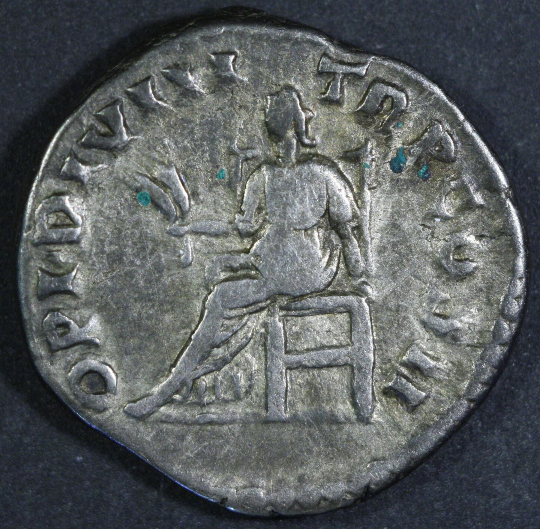 (17mm, 3.43g) Laureate head r. Rev: Ops seated l., holding two corn ears, left hand on top of throne. RIC 8a; aVF.