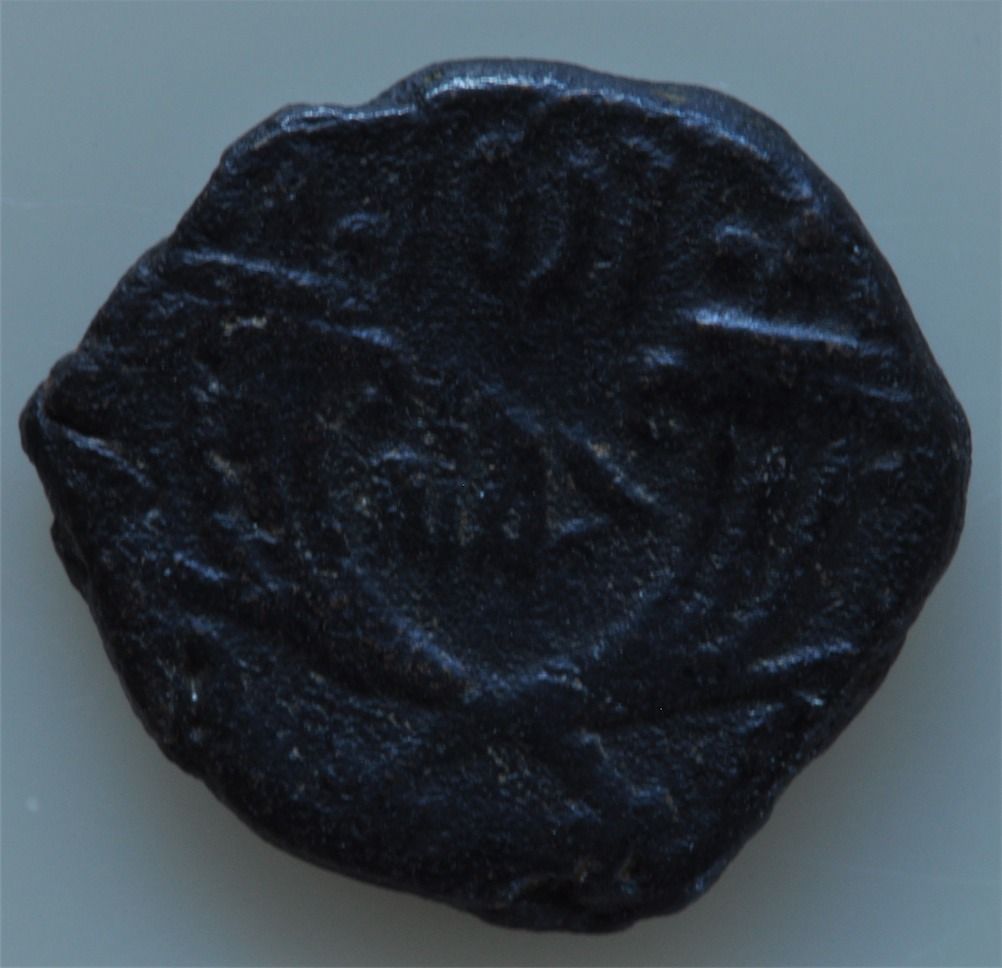 Petra (71-106 AD) - AE-17 Rabbel II Obv: Conjoined hds. of Rabbel II and Queen Gamilath Rev: two cornucopiae crossed with Aramaic legend between. 3.4 grams S-5706 Ex. Ponterio March 95 lot 452, VF.