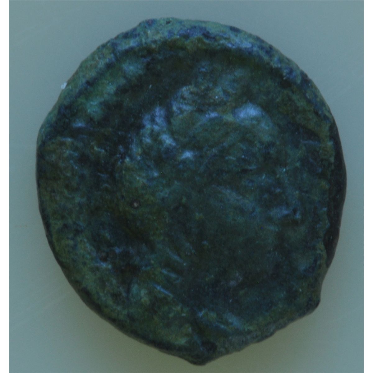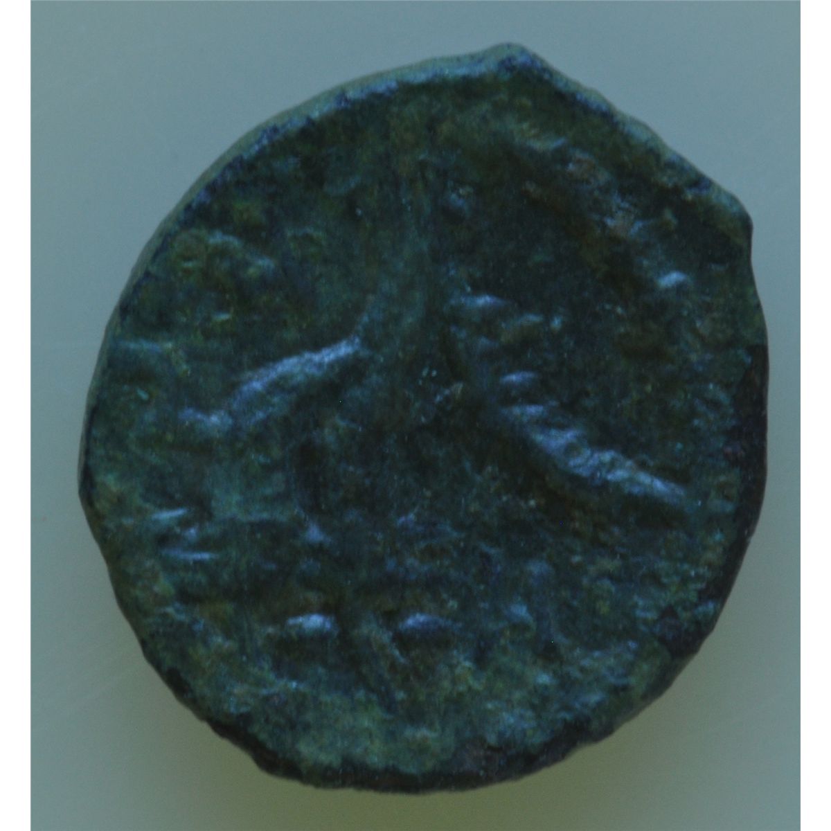 Petra (9-40 AD) - AE-13 Obv: hd r. headdress dot border Rev: Two cornucopiae crossed letter H above and letter K in right field. 1.7 grams Mesh 61 VF.