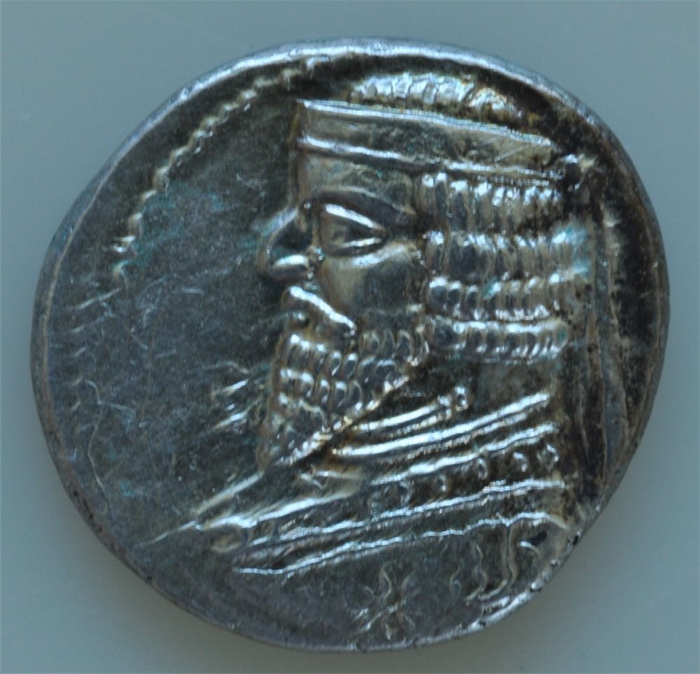 Phraates III (70-57 BC) - AR-Drachm Obv: Diad. and cuir.bust l. with long pointed beard. Rev: Archer enthroned r. with bow. ET below bow. 4.2 grams Sellwood 38.4 S-7401 Var., Ex:Pegasi sale #1 lot 190. Lustrous EF.