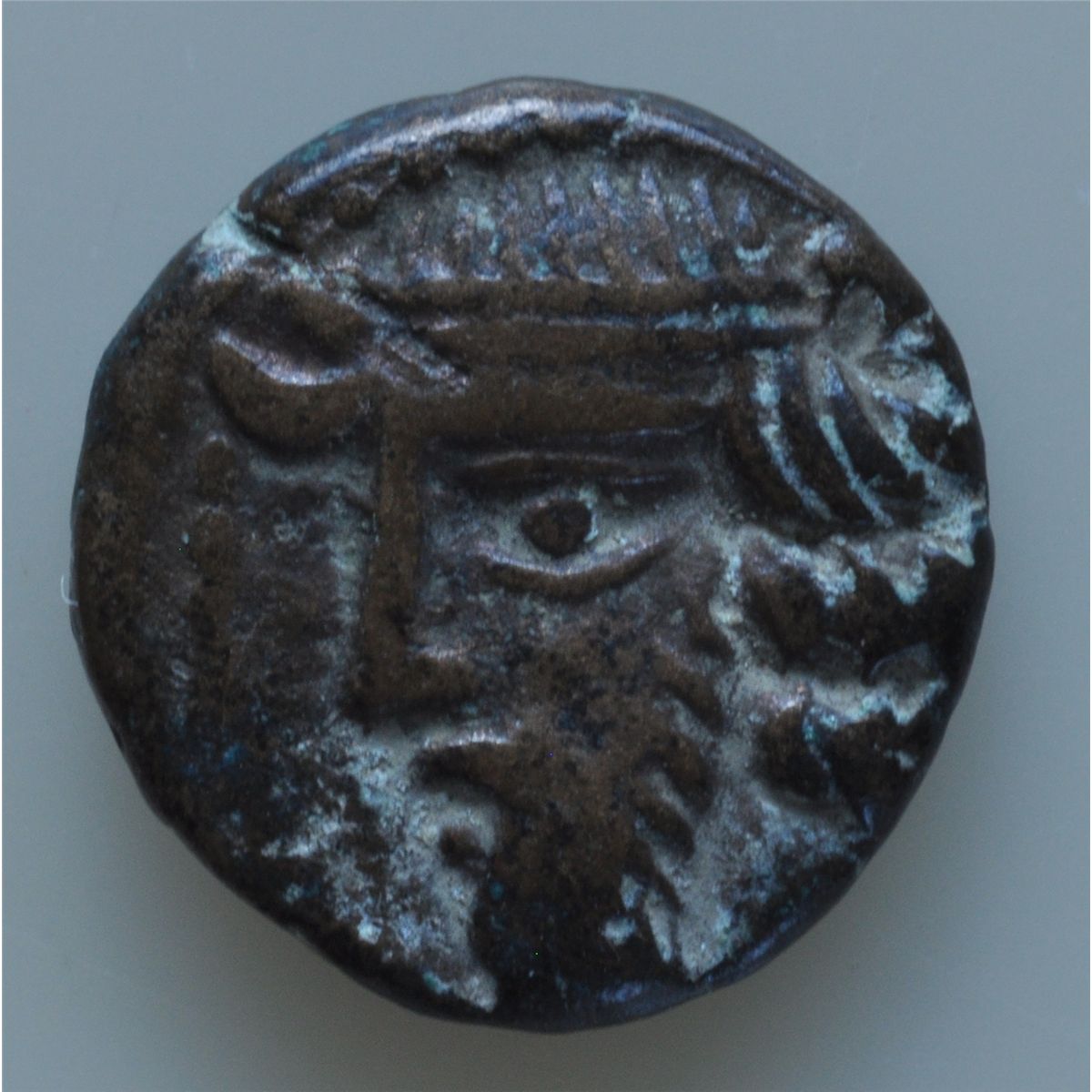 Phraates IV (38-2 BC) - AE-15 diad hd.l. with wavy hair Obv: Archer r. with bow, monogram below 3.9 grams Shore 477 Sellwood 93.1, Ex:CNG #36 lot 477. VF.