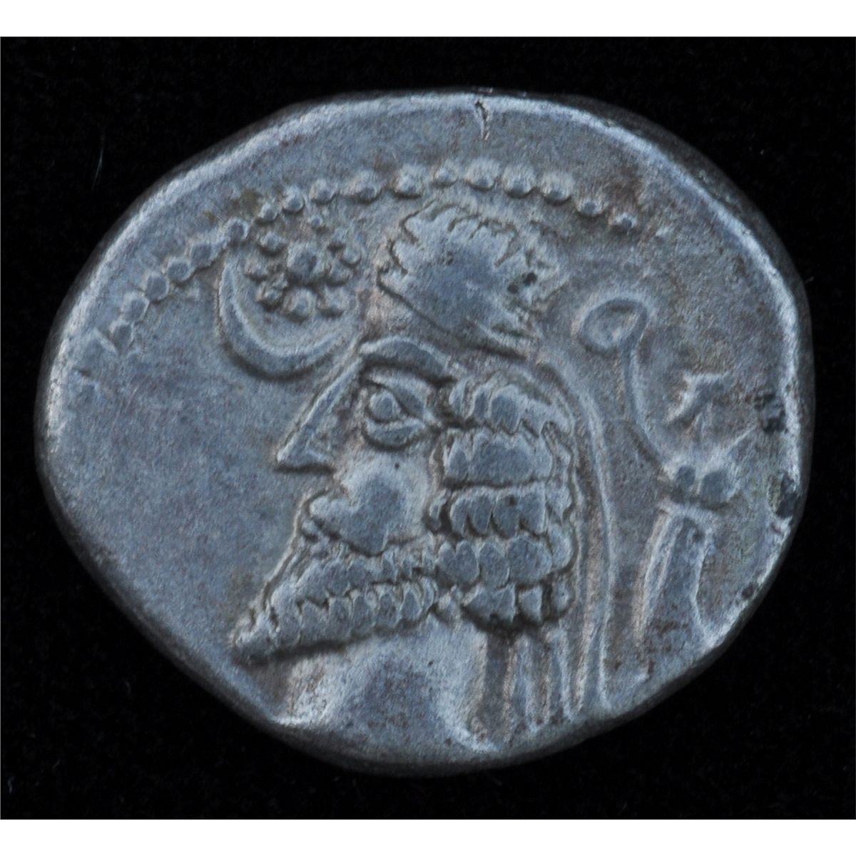 Phraates IV (38-2 BC) - AR-Drachm Obv: Diad. and cuir. bust l. Nike and wreath r., Star and crescent l. 3.43 grams Shore 317(this coin) S-7477 Ex:CNG 36 lot 317. VF.