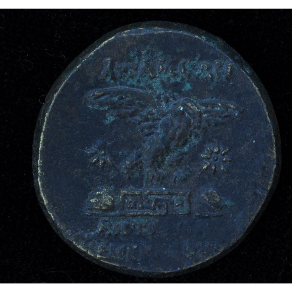 Phrygia Apameia (133-48 BC) - AE 23mm. Bust of Athena right, in high-crested Corinthian helmet & an aegis / APAMEWN, eagle alighting right on basis decorated with meander pattern, flanked by caps of the Dioscouroi surmounted by stars, magistrates ANTIFWN & MENEKLEOS. BMC 46, 9.7 and 11.3 grams SNGCOP-164. 2 Pcs, EF.