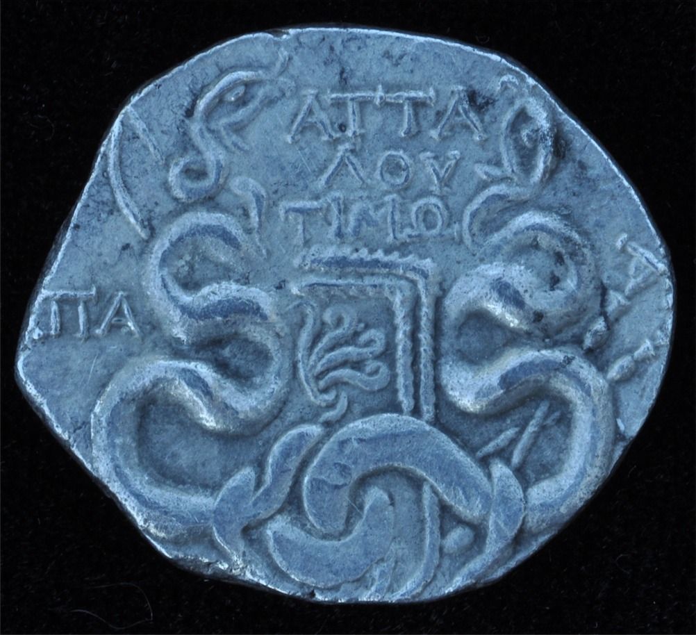 Phrygia Apameia (133-48 BC) - AR-Cistophoric Tetradrachm Obv: Cista Mystica containing a serpent in wreath of Ivy Rev: Bow in case between two coiled serpents, APA l. , two flutes r., 12.4 grams, S-5114, VF.