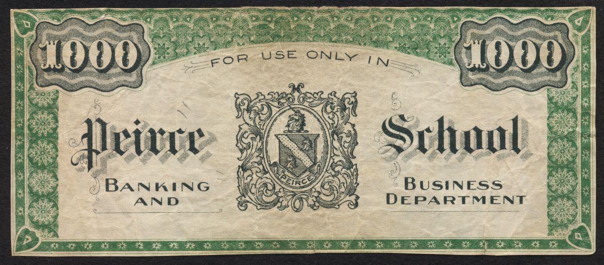 VF Condition. R4. This is the Pierce School from Pennsylvania. Founded in 1865, it was still known as the Pierce College of Business in 1900. It is 1000 denomination SC PA-552-1000.