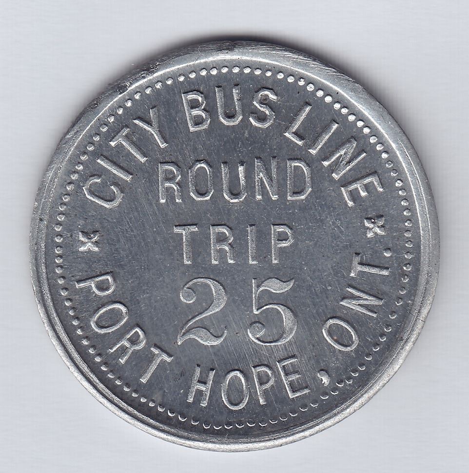 At 750A City Bus Line Port Hope Round Trip 25 Rev: same as obv. EF.