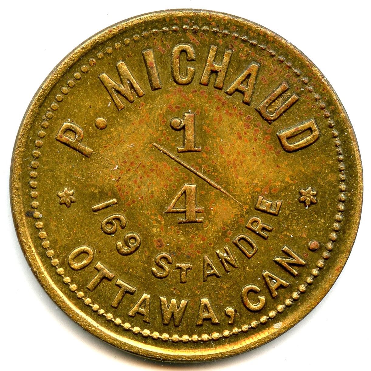 Breton 811, LeRoux 1066g, Toronto Dairy, 6c, Brass, 25mm, 3.44g, AU; Breton 813, LeRoux 1066i, 7c, Brass, 23mm, 2.83g, EF; Breton 824, LeRoux 1066k, P. Michaud, ¼, Brass, 25mm, 4.60g, AU. 3pcs.