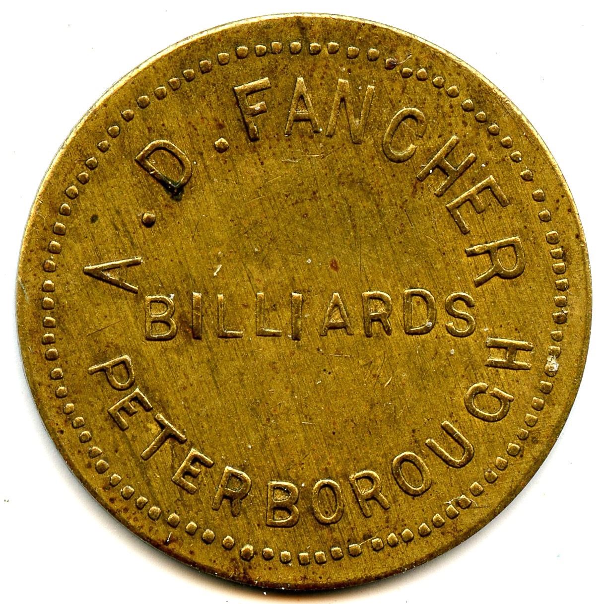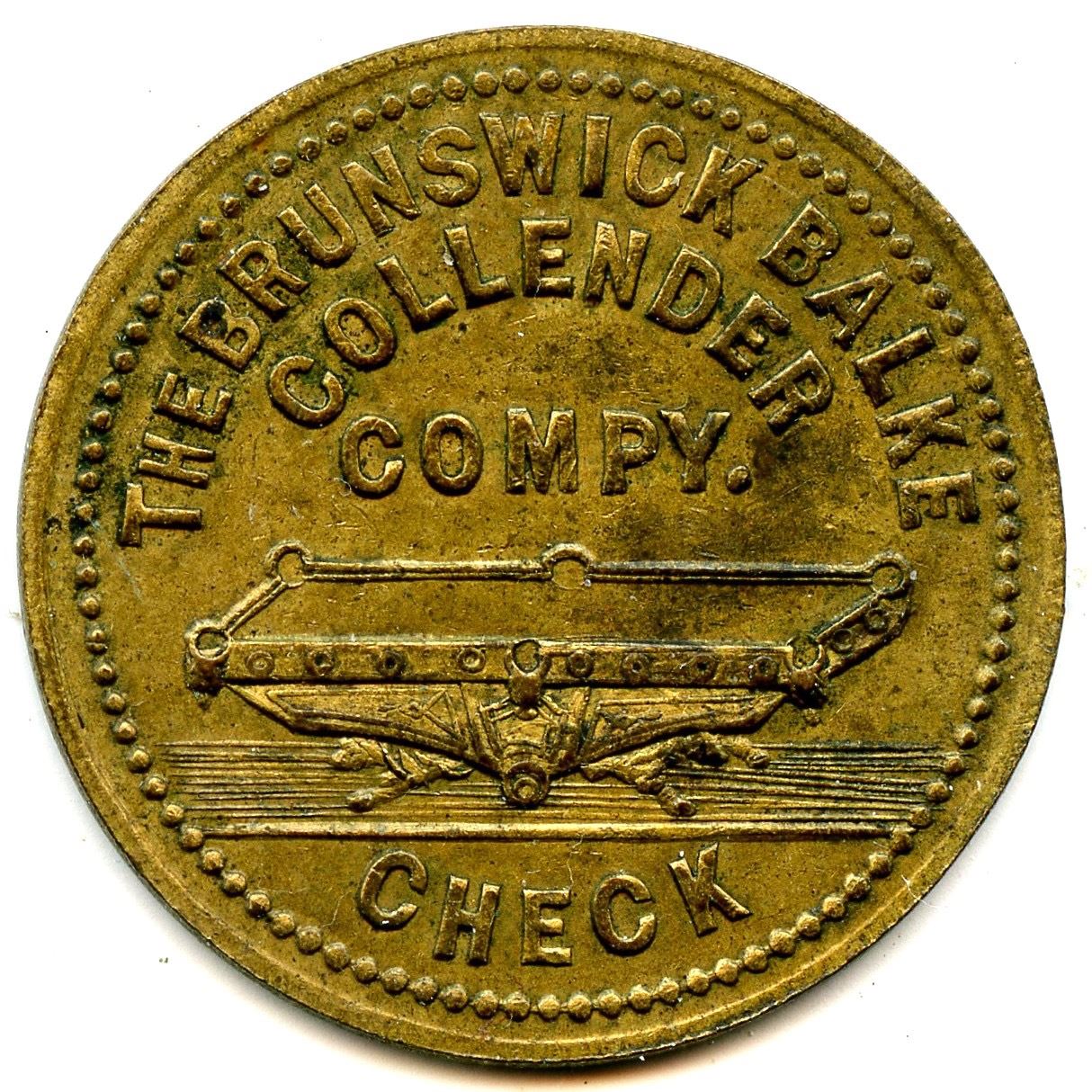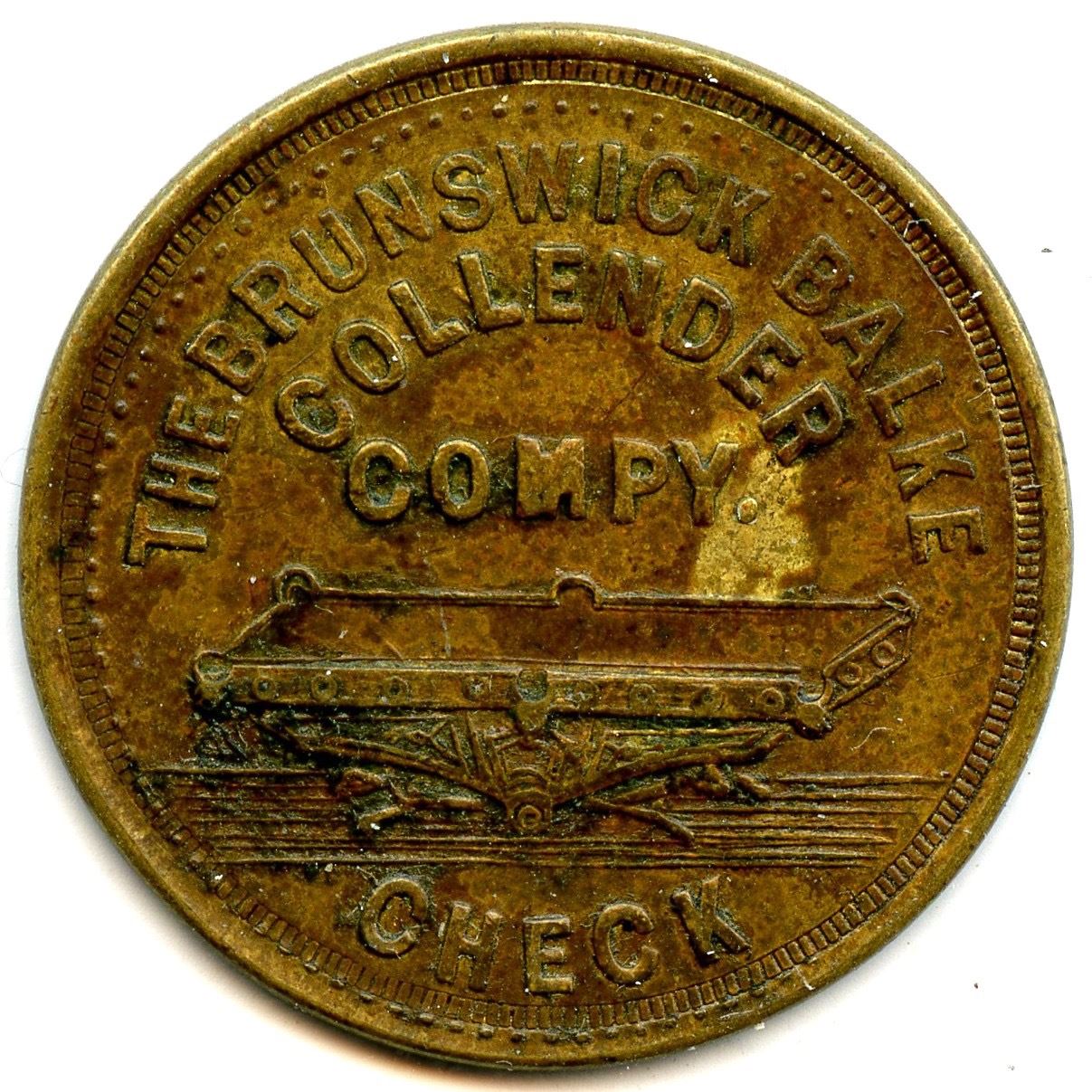 Breton 752, LeRoux 1024, H. Elmslie, Brunswick Balke Collender Check, Brass, 25mm, 3.90g, EF; Breton 753, LeRoux 1025, A.D. Fancher, 5c, Brass, 25mm, 4.13g, AU; Breton 755, LeRoux 1026, Evening Globe, Copper Plated WM, 26mm, 4.82g, EF; Breton 757, LeRoux 1035, Jerry McDonald, Brunswick Balke Collender Check, Brass, 25mm, 4.21g, EF. 4pcs.