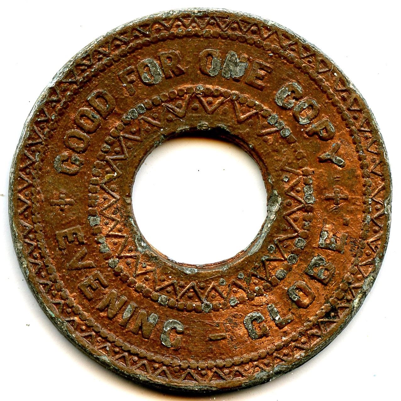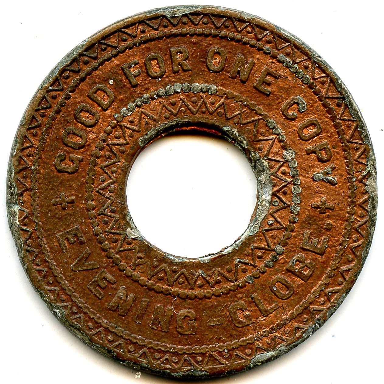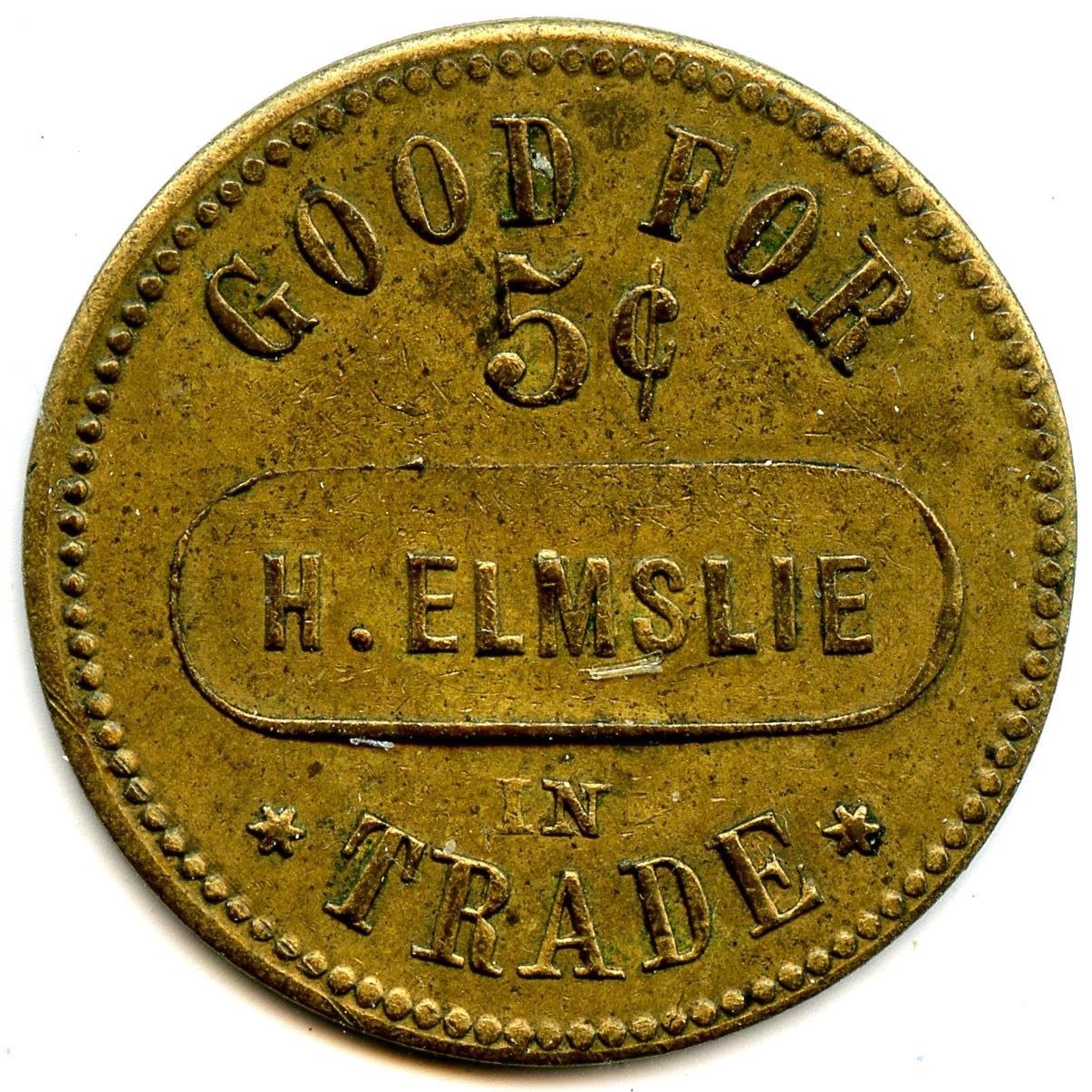 Breton 752, LeRoux 1024, H. Elmslie, Brunswick Balke Collender Check, Brass, 25mm, 3.90g, EF; Breton 753, LeRoux 1025, A.D. Fancher, 5c, Brass, 25mm, 4.13g, AU; Breton 755, LeRoux 1026, Evening Globe, Copper Plated WM, 26mm, 4.82g, EF; Breton 757, LeRoux 1035, Jerry McDonald, Brunswick Balke Collender Check, Brass, 25mm, 4.21g, EF. 4pcs.