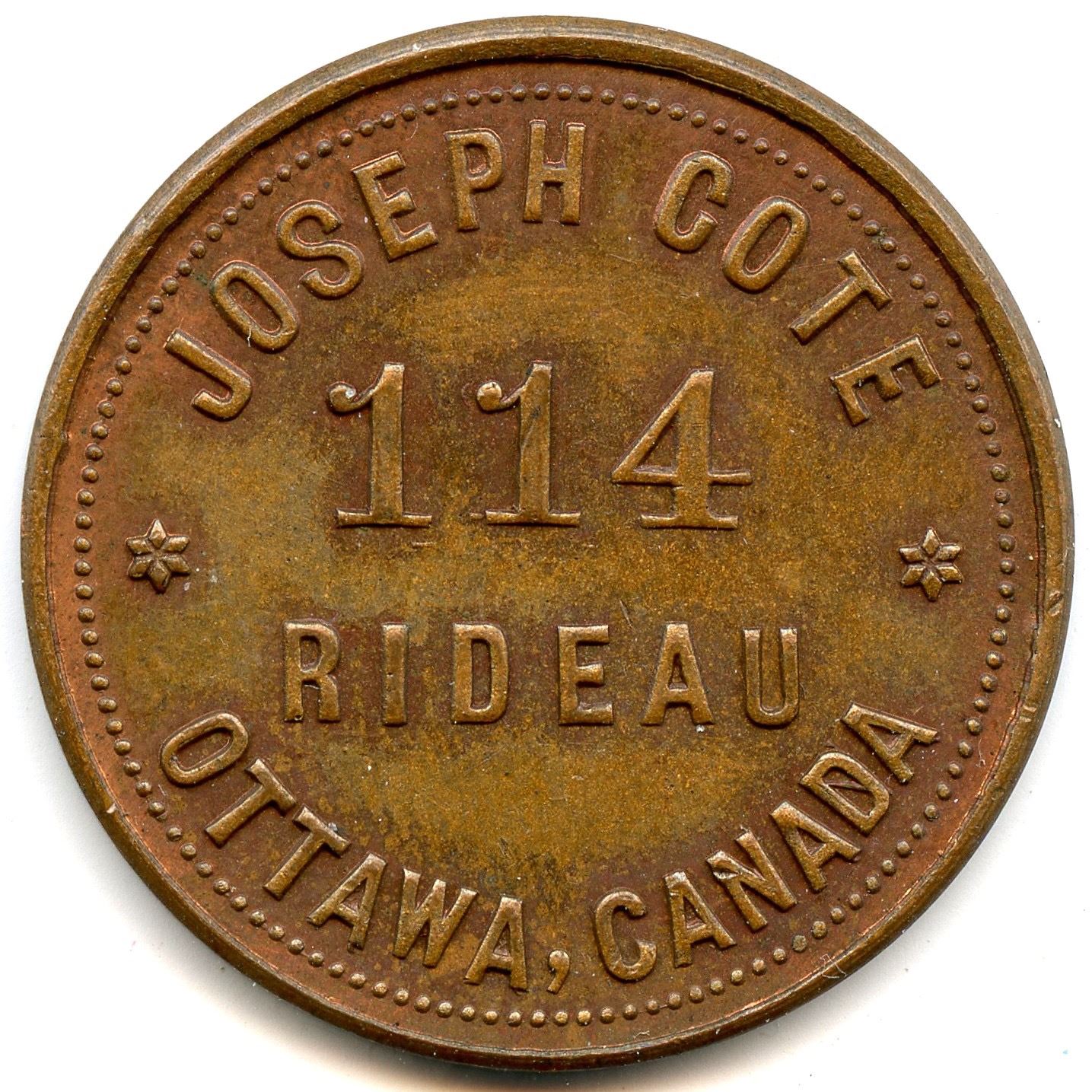 Breton 783, LeRoux 1065c, Nap. LaLonde, 5 Cents, Ottawa, 25mm, 4.37g, UNC; Breton 784, LeRoux 994i, Joseph Cote, Copper, 29mm, 10.37g, UNC; Breton 797, LeRoux 1064u, Foster Sinden, 5 Cents, Brass, 25mm, 4.04g, EF; Breton 839, LeRoux 1073g, W. Taylor, 5 Cents, Brass, 24mm, 4.29g, EF. 4pcs.
