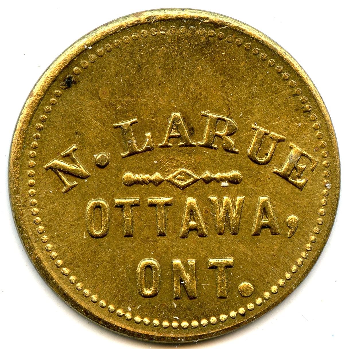 Breton 783, LeRoux 1065c, Nap. LaLonde, 5 Cents, Ottawa, 25mm, 4.37g, UNC; Breton 787, LeRoux 1064b, R.D. Baker, 2½c, Brass, 25mm, 4.87g, AU; Breton 788, LeRoux 1065l, Ottawa Canning Company, 3c, Brass, 25mm, 4.77g, EF; Breton 798, LeRoux 1065d, N. Larue, 5 Cents, Brass, 25mm, 4.50g, UNC. 4pcs.