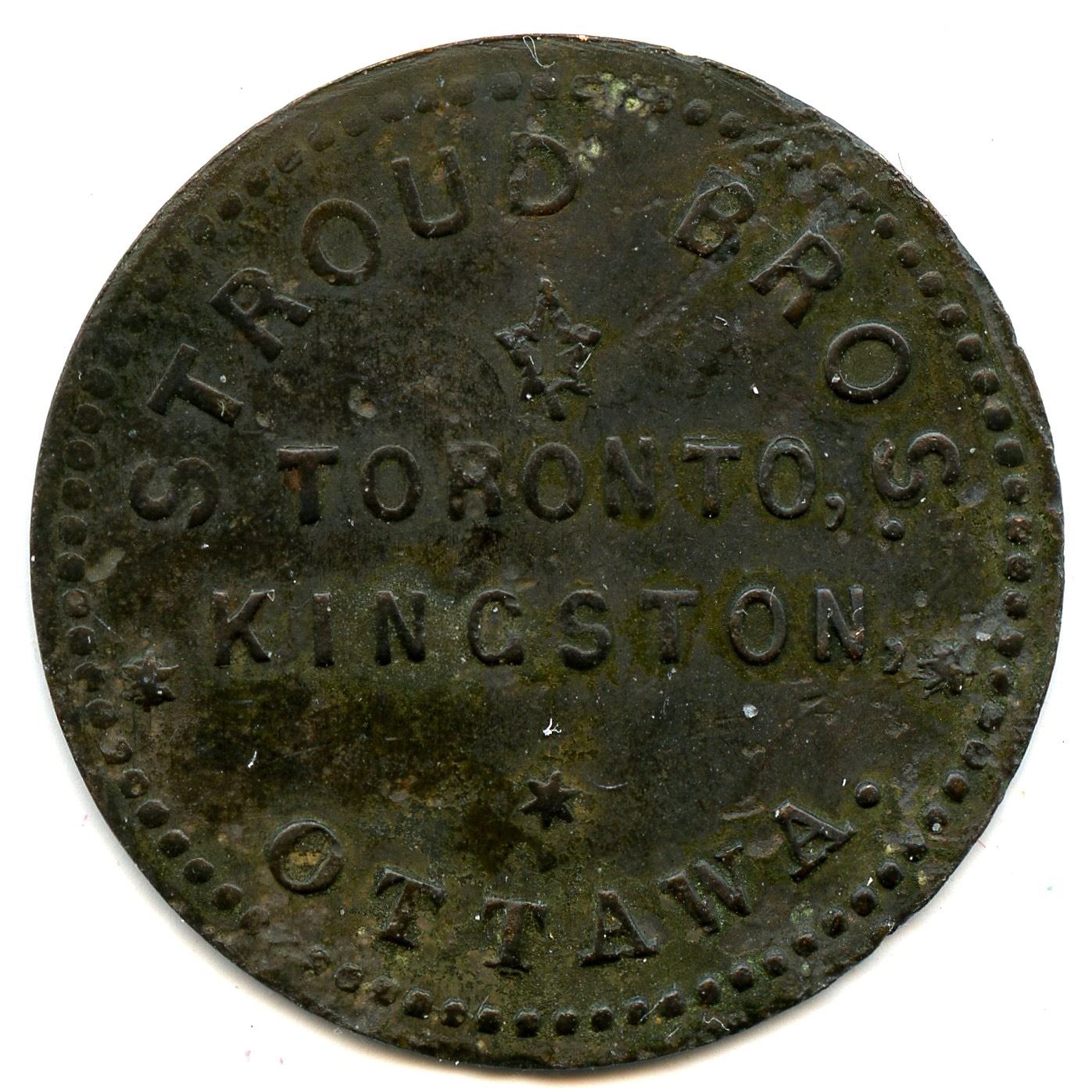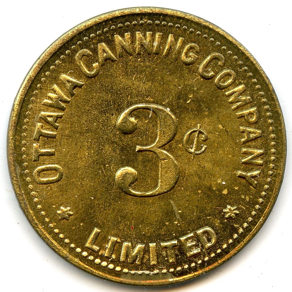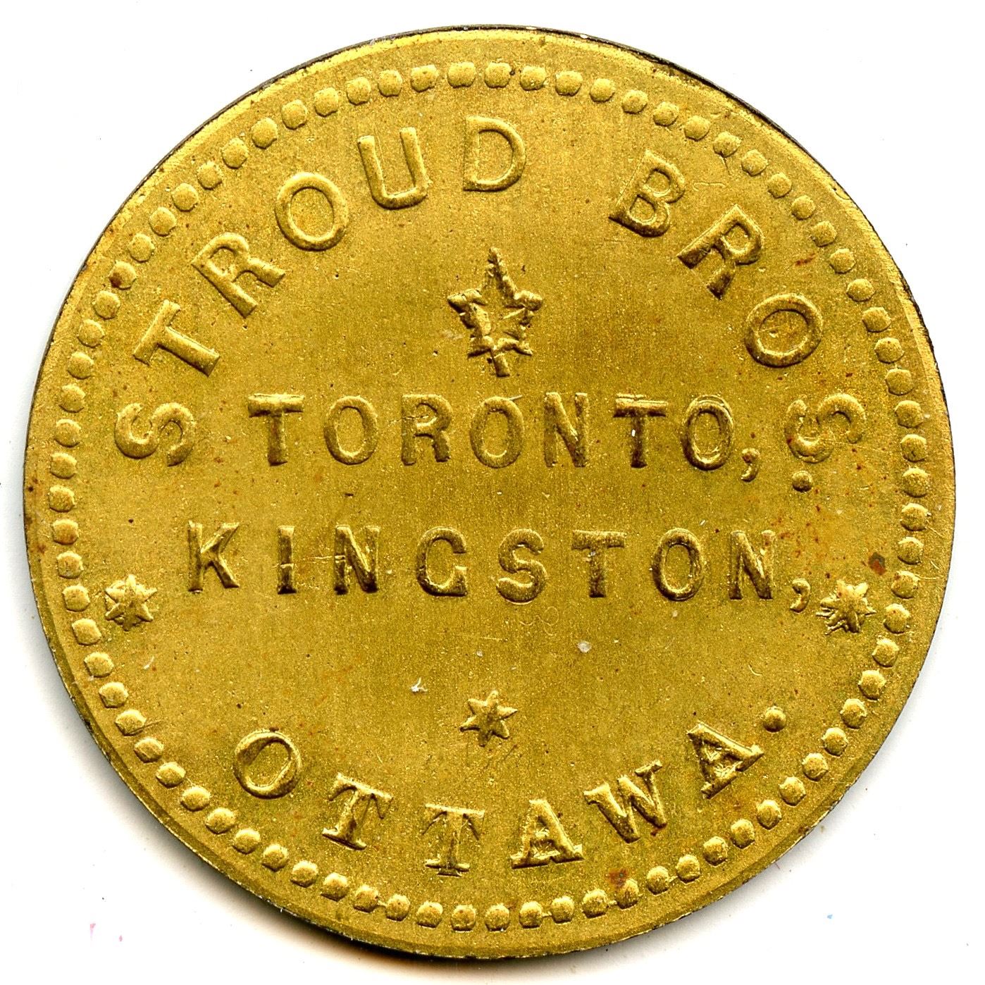 Breton 786, LeRoux 1066f, Stroud Bros., 1lb, Copper, 28mm, 3.73g, VF; Breton 786, LeRoux 1066f, Stroud Bros., 1lb, Brass, 28mm, 4.73g, AU; Breton 787, LeRoux 1064b, R.D. Baker, 2½c, Brass, 25mm, 4.73g, AU; Breton 788, LeRoux 1065l, Ottawa Canning Company, 3c, Brass, 25mm, 4.77g, UNC. 4pcs.