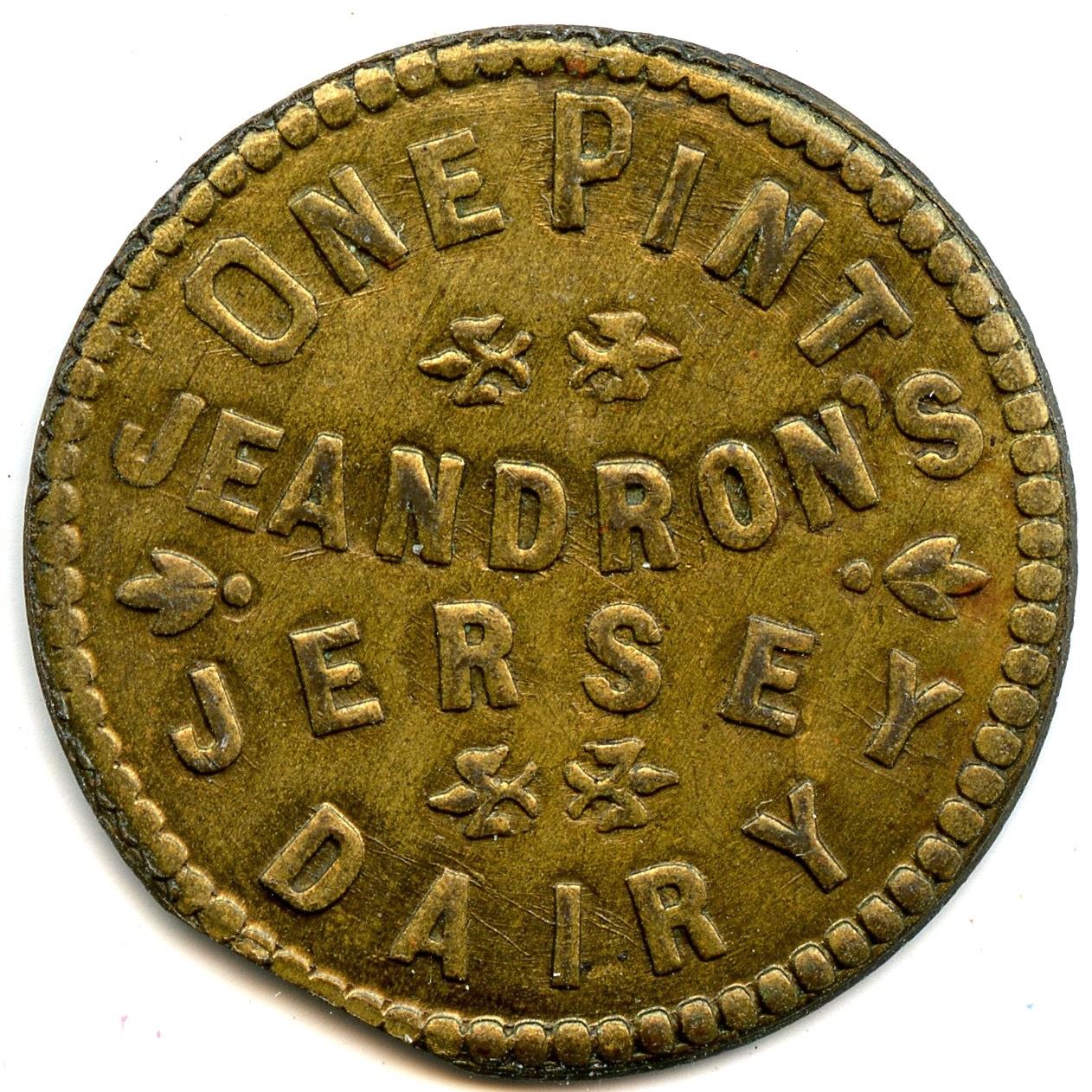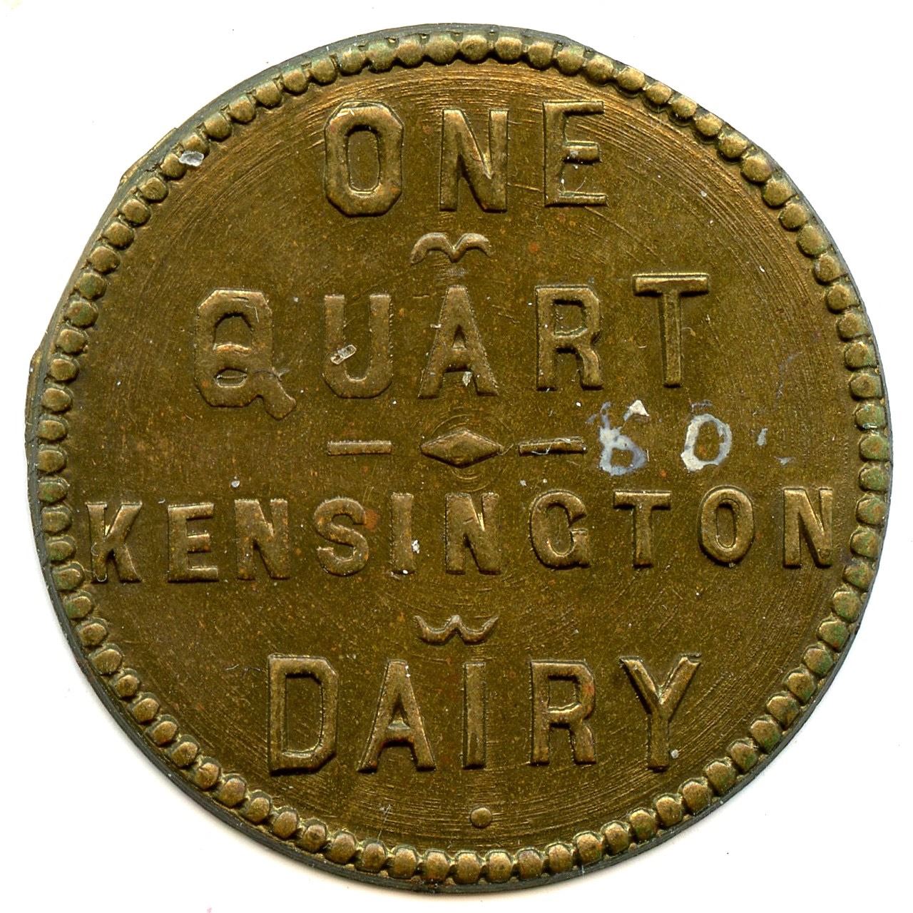 Breton 806, LeRoux 1064y, Kensington Dairy, One Quart, Toronto, Brass, 26mm, 3.50g, AU; Breton 807, LeRoux 1064z, Kensington Dairy, One Pint, Toronto, Aluminum, 23mm, 0.89g, EF; Breton 807, LeRoux 1064z, Kensington Dairy, One Pint, Toronto, Brass, 23mm, 2.91g, EF; Breton 810, LeRoux 1070x, Jeandron's Jersey Dairy, One Pint, Toronto, Brass, 26mm, 4.10g, EF. 4pcs.