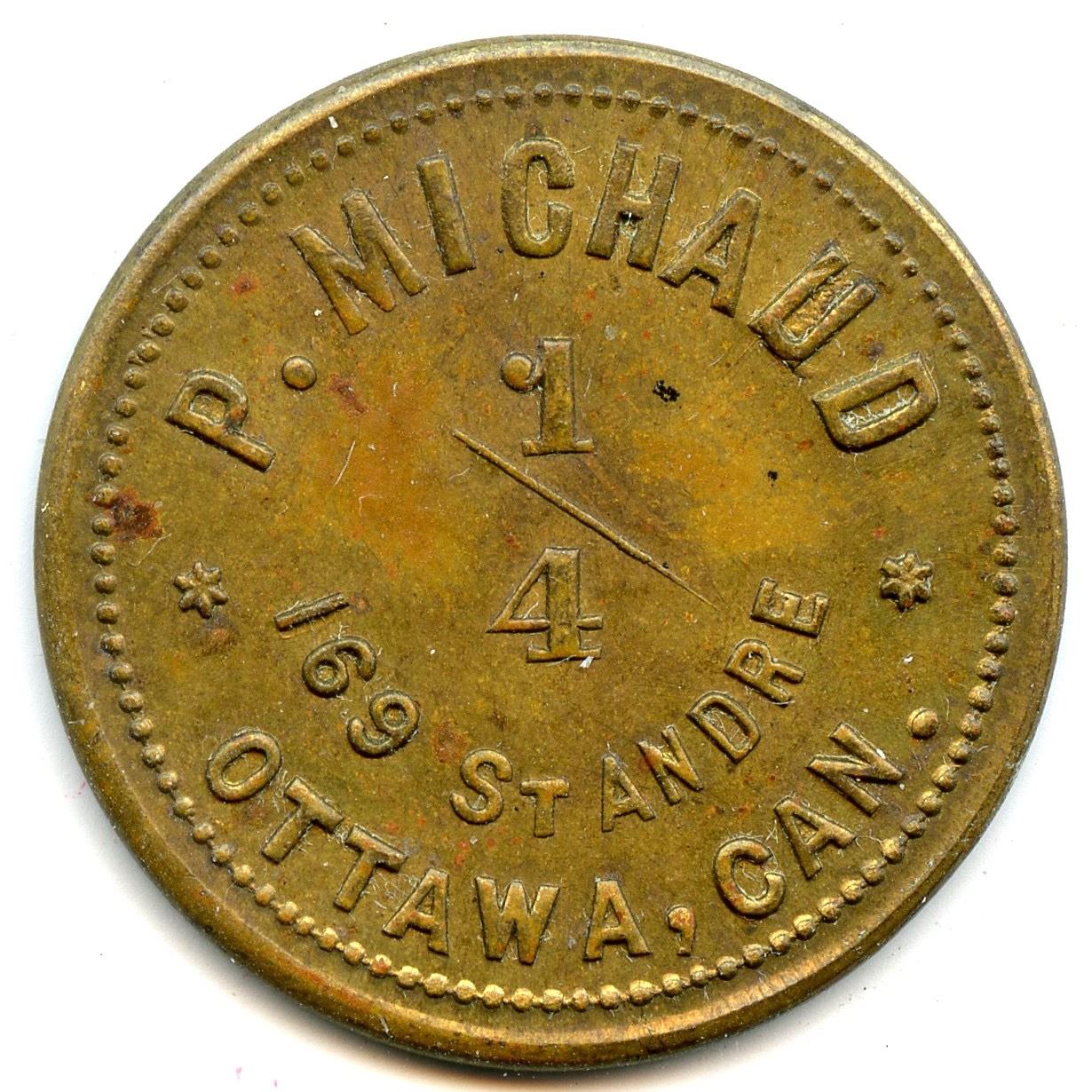 Breton 816, LeRoux 1064c, R. Bayne, 1 Quart, Brass, 25mm, 4.46g, EF; Breton 817, LeRoux 1064f, R. Bayne, 1 Pint, Brass, 28mm, 5.51g, AU; Breton 822, LeRoux 1069m, E.W. Clark, 1 Quart, Brass, 28mm, 5.78g, EF; Breton 824, LeRoux 1066k, P. Michaud, ¼, Brass, 25mm, 4.68g, EF. 4pcs.