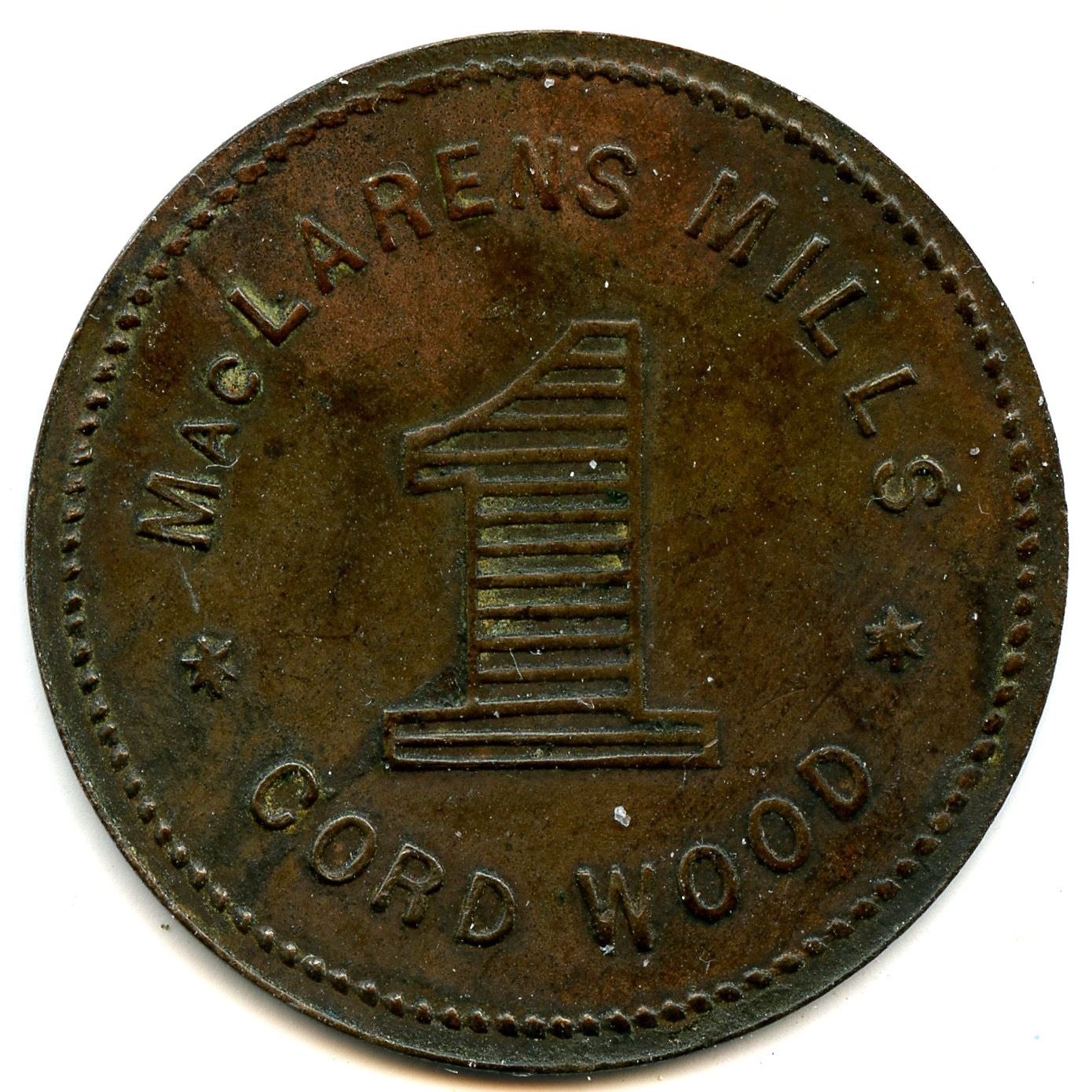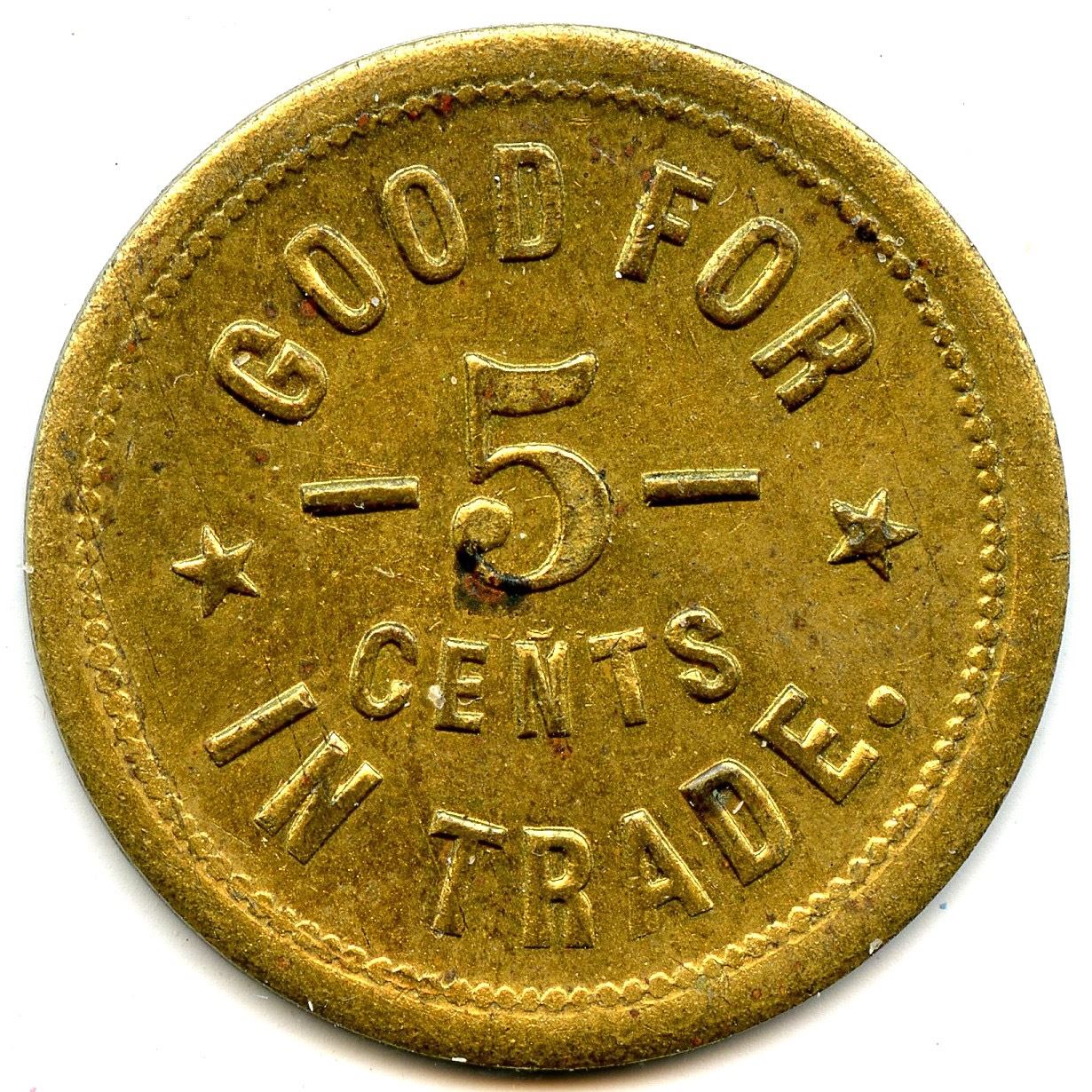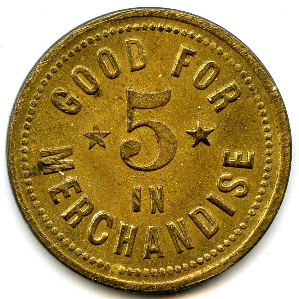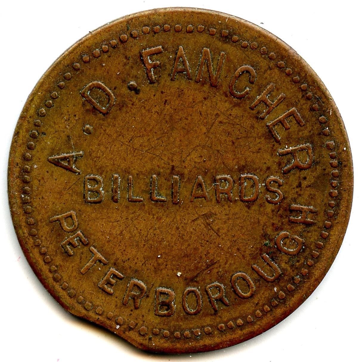 Breton 753, LeRoux 1025, A.D. Fancher, 5c, Peterborough, Brass, 25mm, 4.11g, EF; Breton 756, LeRoux 1032, J.C. Lampman, 5, Thorold, German Silver, 20mm, 2.81g, UNC; Breton 760, LeRoux 1039, H. Paulas, 5, Fort Erie, Brass, 20mm, 2.90g, AU; Breton 764, LeRoux 1058, Thos. McConnell, 5 Cents, Lindsay, 25mm, 3.92g, EF; Breton 768, LeRoux 1059, MacLarens Mills, 1, 16 Cross Bars on the 1, Copper, 28mm, 3.78g, EF. 5pcs.