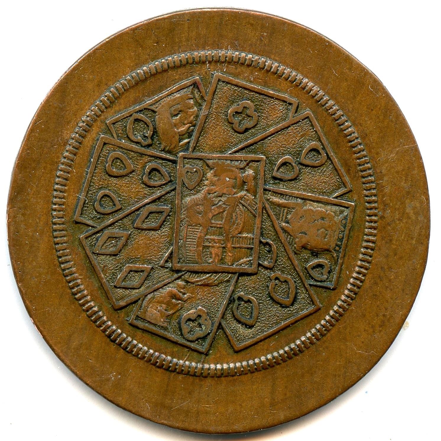 Breton 572, Playing Card Token, Copper, 30mm, 11.55g, EF; Breton 579, LeRoux 978, Copper, 28mm, 7.86g, UNC. 2 pcs.